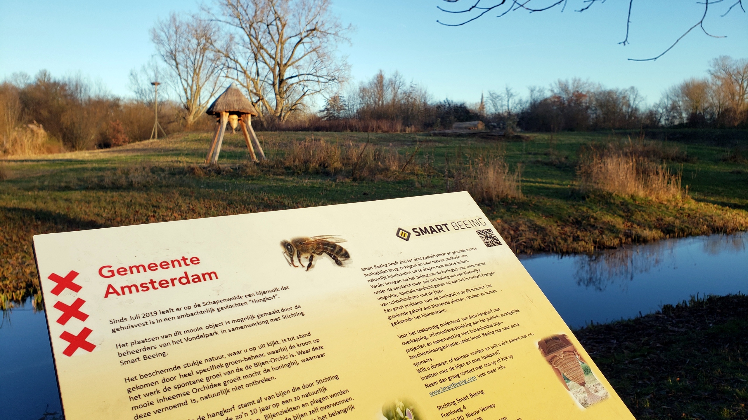 Foreground, behive; background, stork on nesting platform. At least, I think it’s a stork but maybe different migratory birds use those platforms at different times. That’d be a smartly-adaptive Dutch approach to supporting migratory bird populations in the midst of probably the most famous park in the nation…