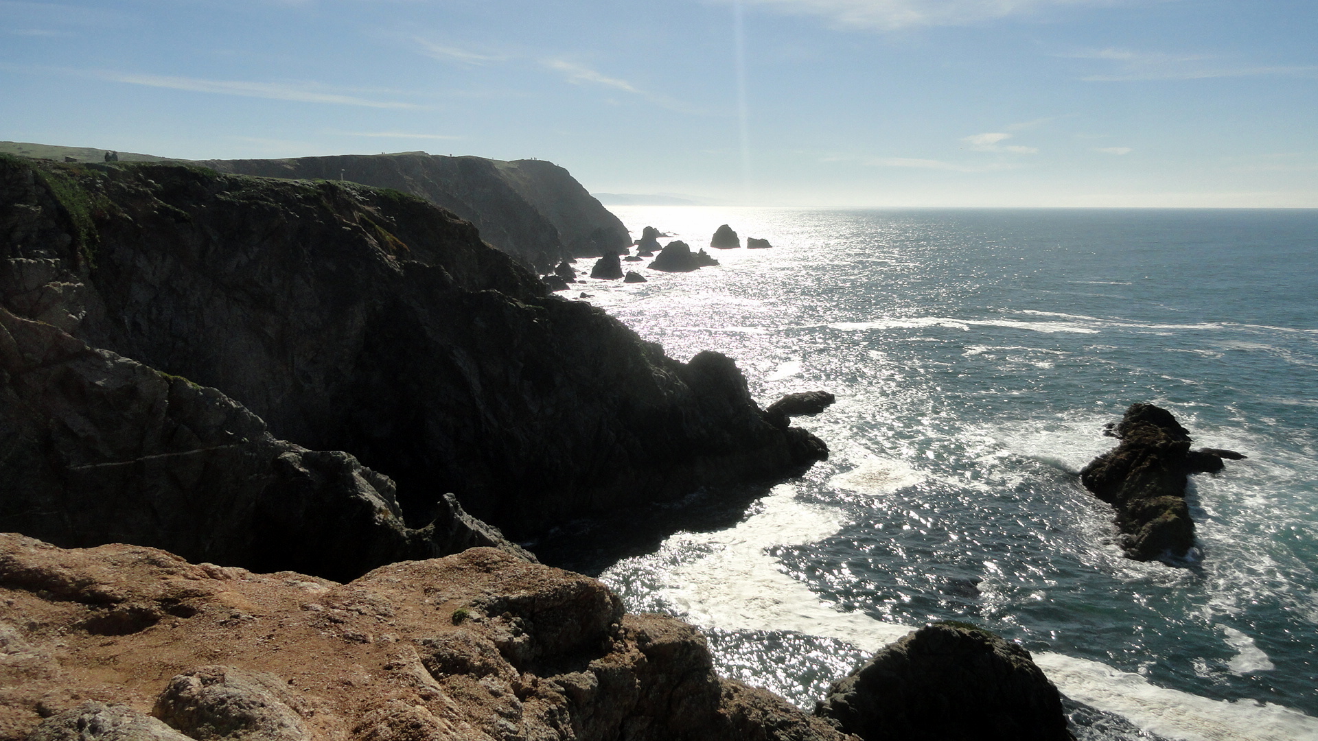 The previous post showed some of the redwoods from Armstrong Grove, maybe 10 or 15 miles inlands from the Pacific ocean, upstream along the lovely and wine-producing Russian River. In the photo immediately above, you see where the Russian river meets the Pacific – and another shot of more or less the same view after the gallery of photos below. All of these photos were taken on the same day as that redwoods outing, on a lovely coast & redwoods loop trip I took with an old high-school friend of mine who’d come up to check out the place I’ve been calling home for the past few years. Large chunks of the Sonoma County coast line are set aside for the Sonoma Coast State Park, and most of the photos in this entry come from sections of that extensive and lovely park.