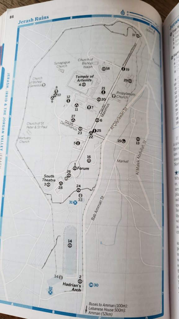 I do need to add a caveat, though, that the names I’ve given these photos are likely accurate, but certainly not guaranteed. In cany case, I do hope you enjoy all these Jerash pics and posts. My current plan is try to post the rest of Jerash and Amman before I return for the final swathe of Petra photos. Do add Jordan to your bucket list. And when you go, do plan more than a day in Petra, and at least a day to explore Jerash and Amman as I did. And get a true printed guidebook before you go – that was one of my very best decisions, and I can recommend Lonely Planet which really helped guide me well in both Petra and Jerash…and also Amman. That evening rainy-day bike stop at the book store the day before I flew out was well worth it! 😊