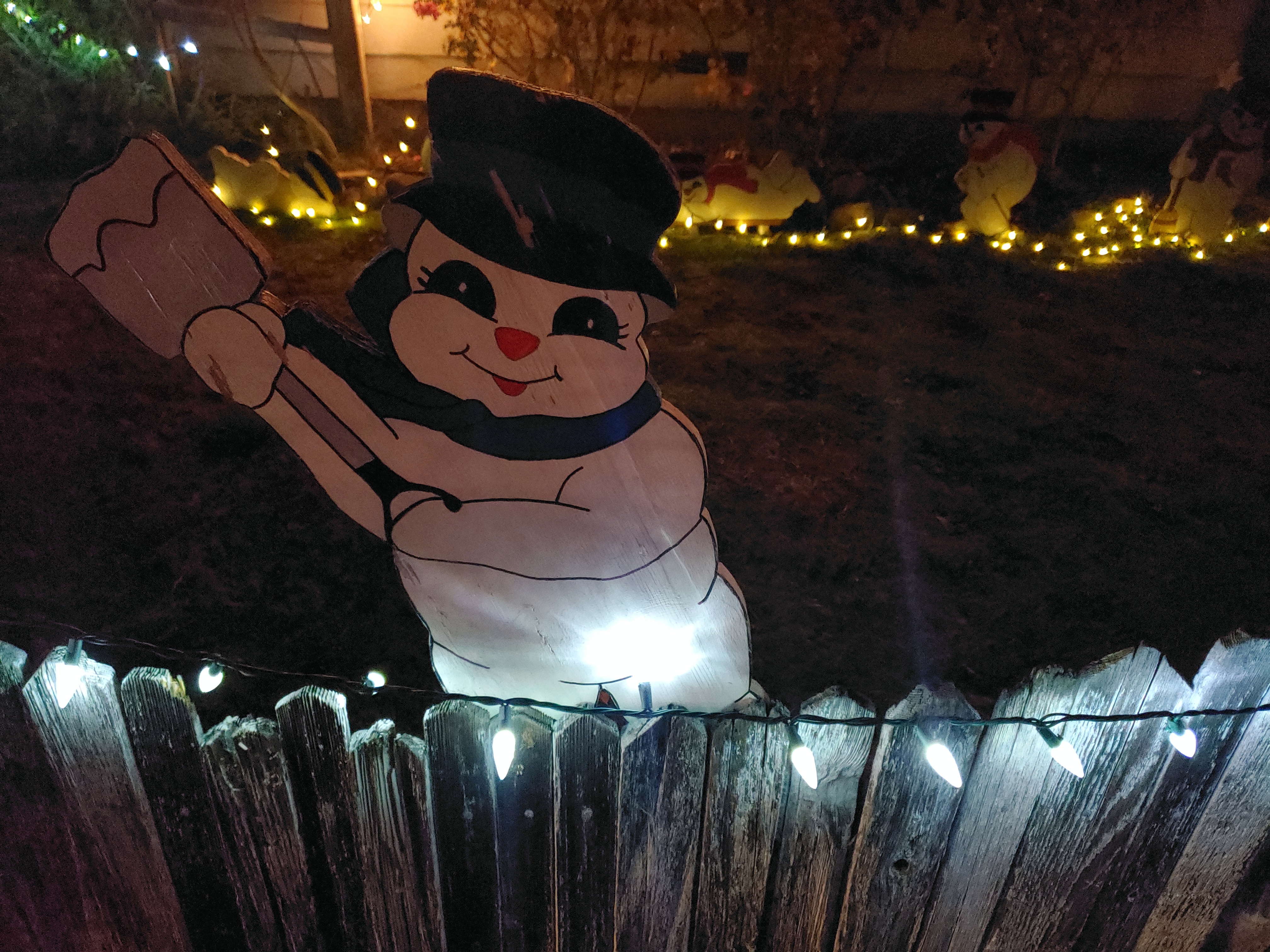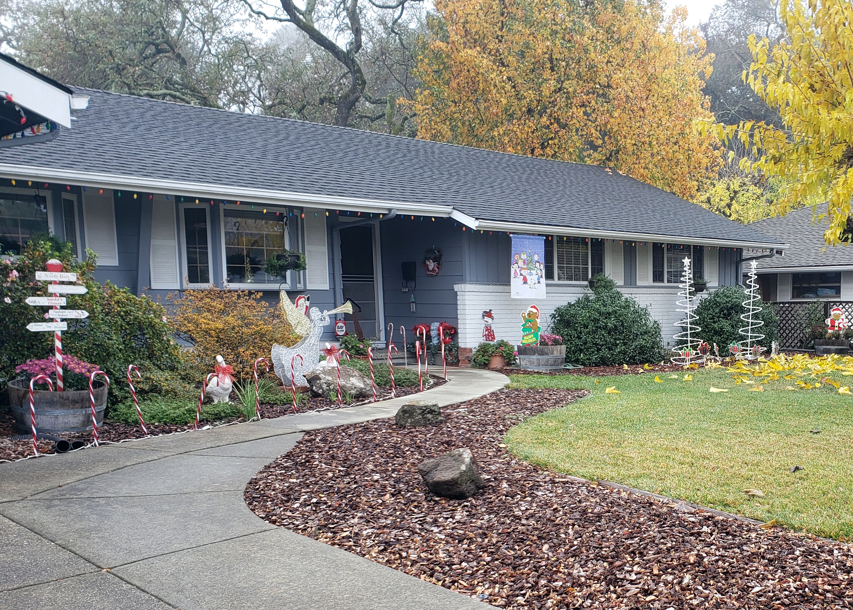 Ok, so when I set out to share some of the holiday spirit with y’all, I had no idea how extensive my research walks and bike rides might need to be in order to even scratch the surface of what my fellow Santa Rosans are putting out there this year. And of course, what with all the daytime photos of deflated blowup characters, I realized that for you to grasp the true magnificence of what some of these houses show, I’d have to get back there at night.