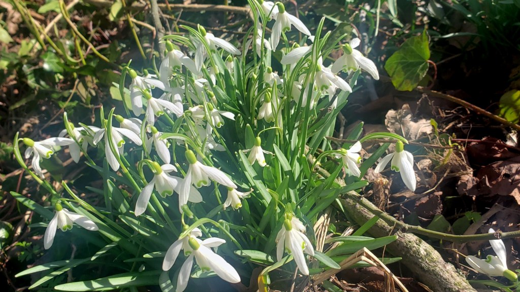 Above, last Friday the 31st; below all from the frozen Saturday morning of January 11th. They’re all from the same patch of daffodils, so that frozen early morning clearly didn’t harm the blooms because they’re all still quite radiant and cheering.