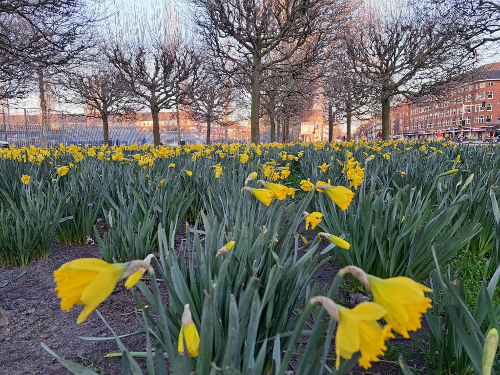 Welcome back, dear readers. One or two of you have reached out to double-check that all’s well in my world. Truth to tell, it’s been a hard slog of a winter season / past six months in both life (A’dam really can get grim, wet, and windy in the winter months) and work. But there are moments of joy always, and this captures one of my finer bike rides to work recently. Imagine, if you will, the contrast between this and biking home into the wind and rain at the end of the same day. Which is a thing that has been known to happen more than one could wish, lately. I’ll try to get back to dailies soon, if not immediately.