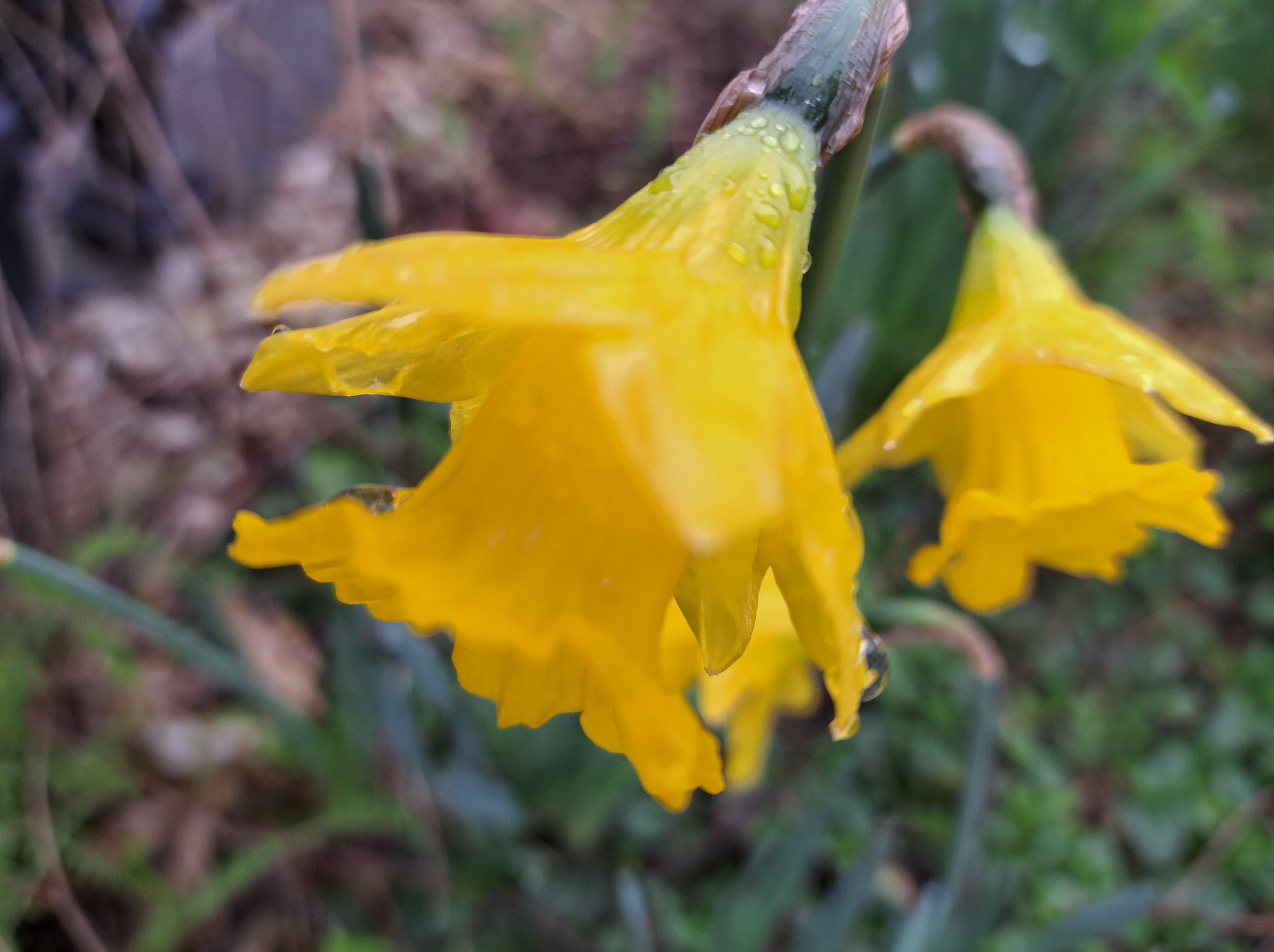 Then there were these hardy early-January bloomers, in a patch of daffs that lasted from end of December or early January right up to a week or two ago before fully ending their bloom – in the process surviving snow and a freeze or two.