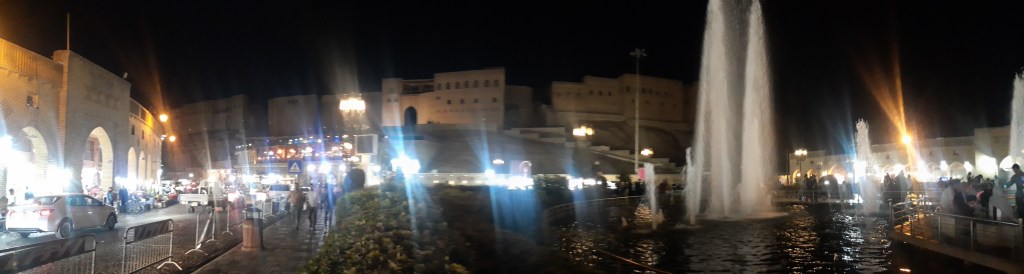 So last week I flew off for some visits to our project locations again, changing planes in Doha. This meant we flew over some parts of Iraq I’ve come to know a bit, and I’m reasonably confident that the city you see here by night is Erbil, though the in-flight map didn’t identify enough cities to confirm this hypothesis.