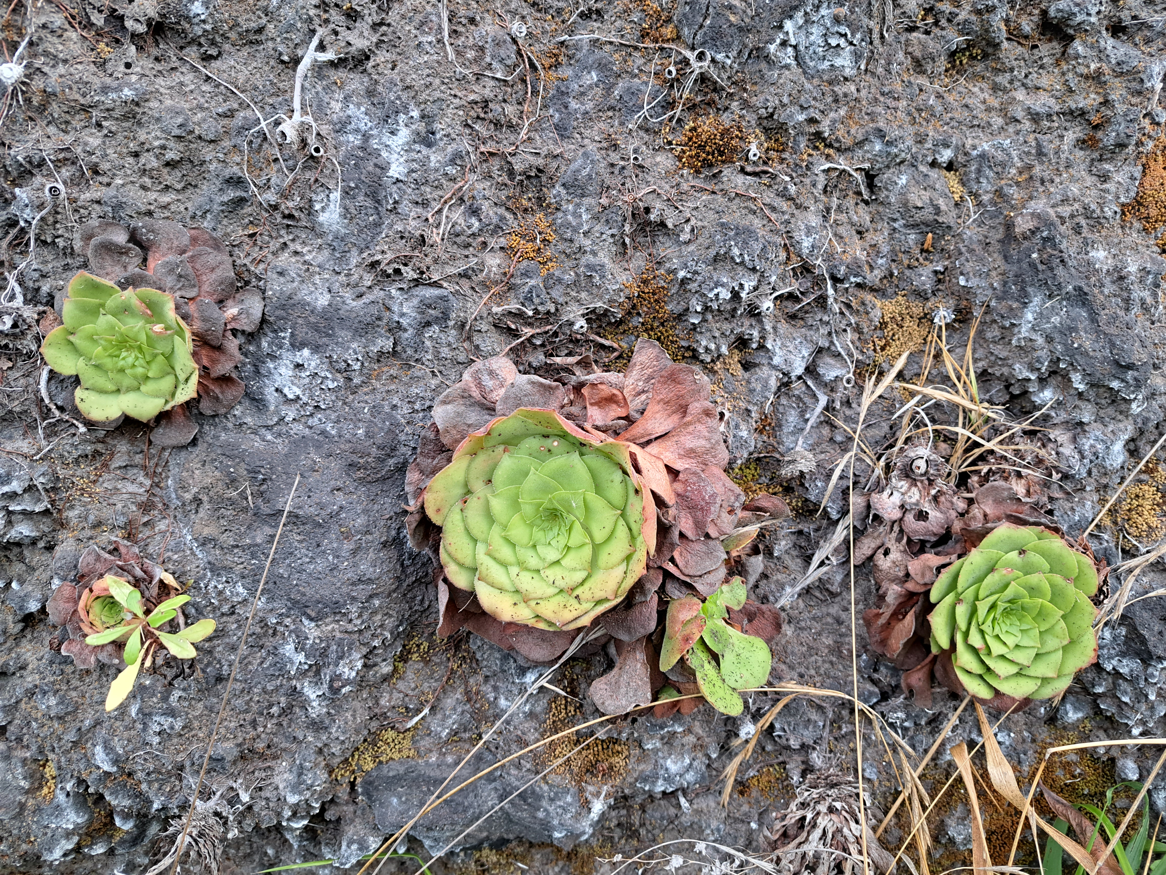 A selection of the flora of Madeira. Below middle, a banana flower with above it some early-forming bananas. If ever you travel to a place where they serve it (generally southeastern areas of Asia, in my experience), do order banana-leaf salad or any other preparation of this interesting item. 🙂