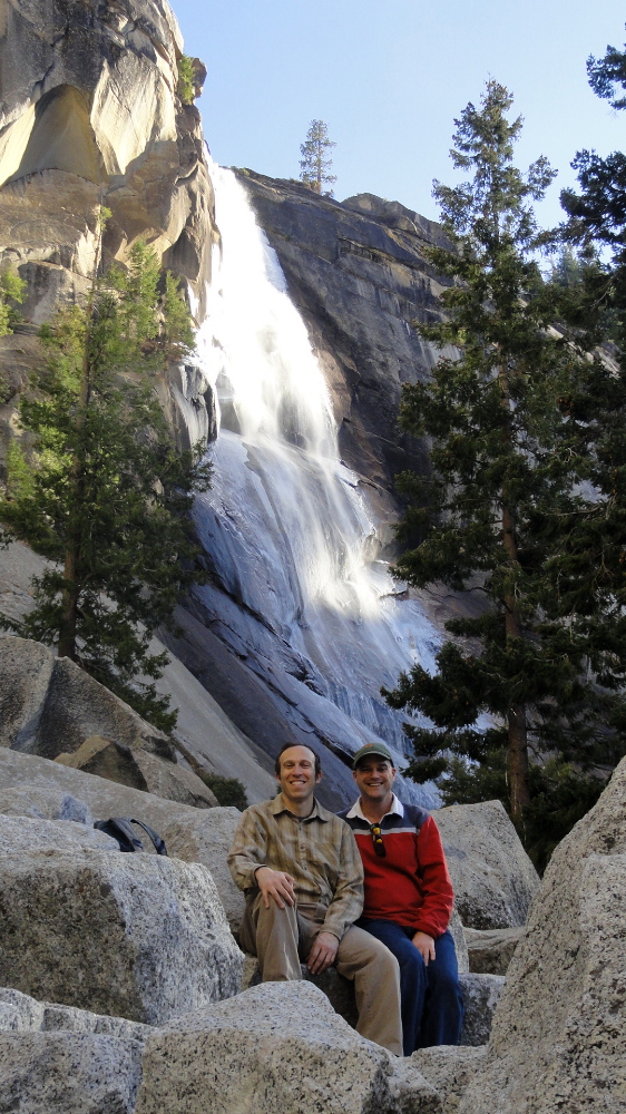 For the holiday weekend to celebrate Martin Luther King’s birthday, I went down to Yosemite for a few lovely days of hiking and relaxing with some great friends from SF and LA. I’m based here in SF now since early January, then back to LA in February with an expected start of my next assignment either late March or some time in April: not yet quite clear. More on that whenever I can. For now – enjoy the pics of Yosemite in an unusually dry and snowless winter. Hopefully there will be some storms soon, because as those of you who know it will see, these photos do NOT look like Yosemite should in mid-January (= mid rainy season)! Nonetheless, as you see in the shot below, of me next to a frozen Chilnualna Falls, the temperatures are cold enough, there’s just been no rain or snow for two months in this wet season!