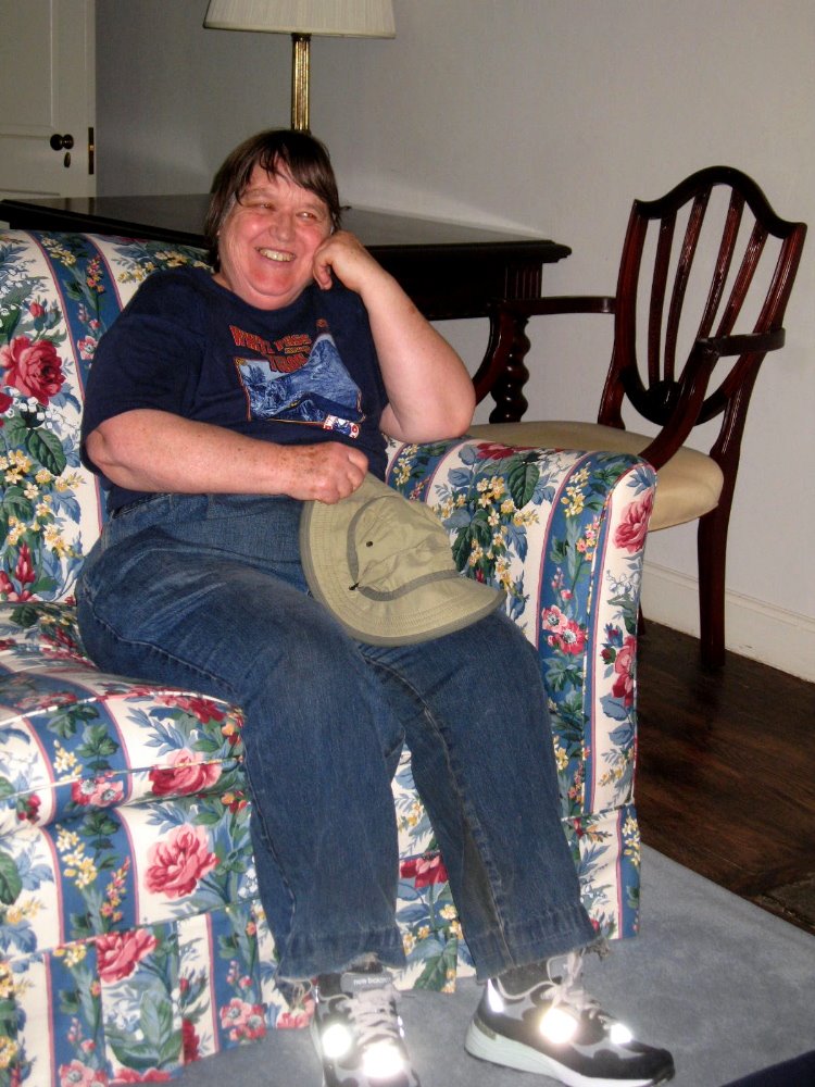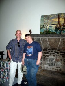 Above and below are photos of Top Cottage, FDR’s truly private retreat up a high hill inland from the main Roosevelt family house. Roosevelt was an amateur architect, and designed some local post offices as well as this house, a visit to which is a real treat that gives a sense of how Roosevelt gave himself quiet space as he directed the rejuvenation of the American economy and the war effort. Since they’ve either made replica furniture that very closely matches what was once there, or brought back actual pieces that were there at the time Franklin & Eleanor hosted, for example, the King & Queen of the UK, it was a real treat for Mom & me to pose for a photo in the same spot as some pretty famous folks.