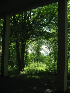 …the view from the porch of Top Cottage. You can sit there and hear…nothing but the sigh of wind in these trees. For a man directing the war effort in Europe & the Pacific, such a retreat must have been priceless.