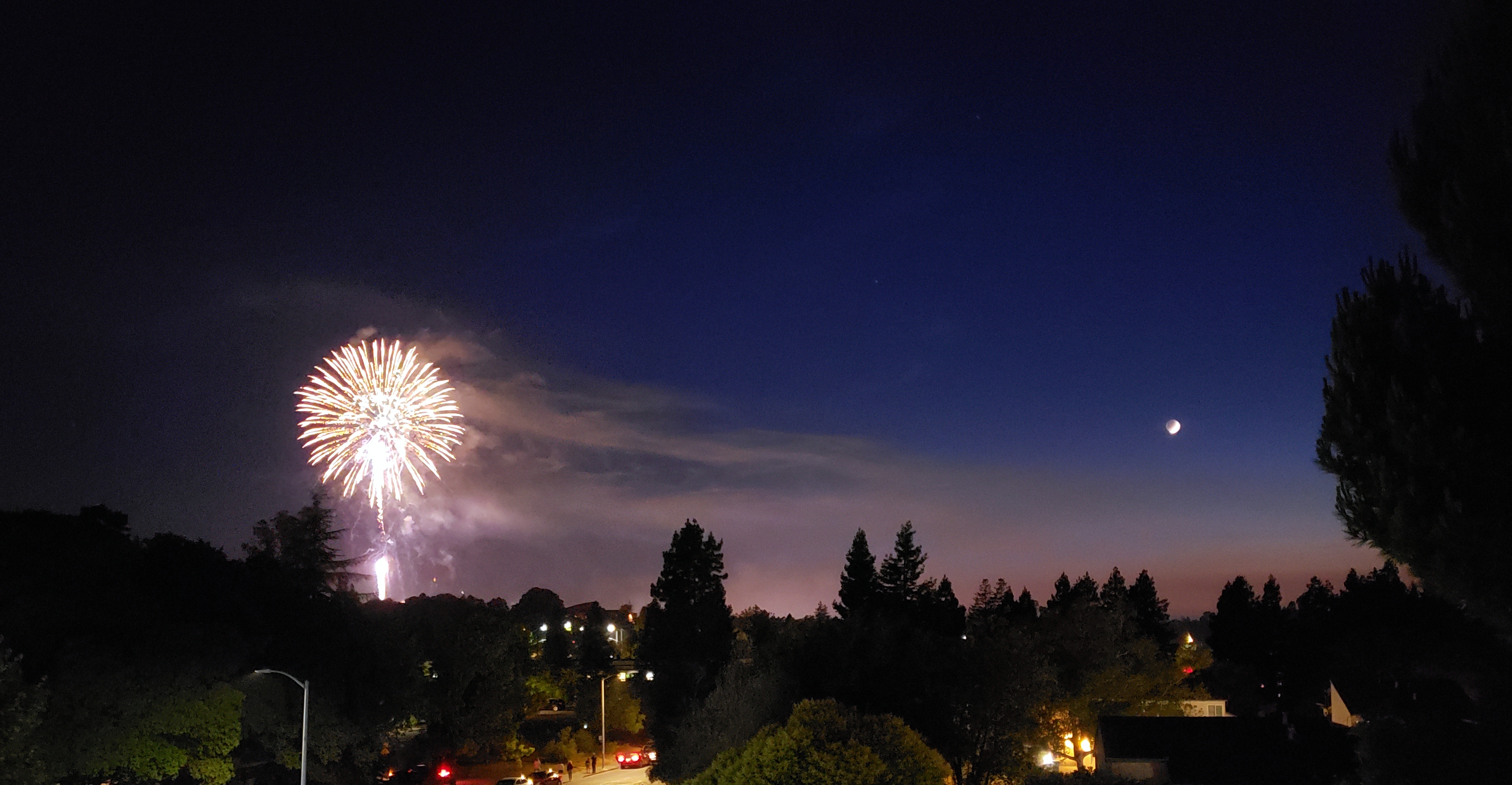Ever since childhood I’ve been a complete sucker for a nice fireworks display. These days I’m not a fan of loud noises, especially explosive loud noises that are unexpected…but if I know fireworks are in the plan, then I’ll settle in and enjoy them for sure. I’d already had my home-base in Santa Rosa several years before I learned how well situated my apartment is to see most of the town’s annual July-4th fireworks display. Being the county seat of Sonoma County, I think Santa Rosa feels an important civic duty to have a great event at the annual celebration of US-nationhood. But the first few years I “lived” there, I didn’t happen to be in town at the right time in July. This year I was; I was free and enjoying some wine and the views on my balcony as the fireworks lit up the sky – along with a nearly full moon which was also lovely that evening. I’m fondly remembering summer in Sonoma County as Bangladesh – where I find myself now – prepares to celebrate its own national holiday on the 16th of December – Victory Day. Enjoy 😊.