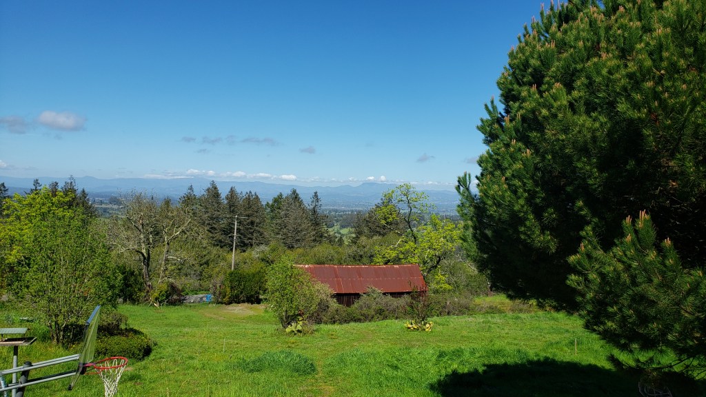 The most recent of those four was the Glass Fire, which started on the Napa County side of the (twice-burned) ridge you see above, then burned its destructive way over onto the Sonoma County side. The fire crews worked hard to keep it from burning all of Mt St Helena. You can see this dramatic mountain in every picture in this post. It’s the core of Robert Louis Stevenson State Park, has five different peaks, and straddles both Napa and Sonoma Counties as well as Lake County, at the point where all three counties meet. Its highest peak is also the highest point in Sonoma County at 4,342 feet above sea level; another of its peaks is the highest point in Napa County. Once I get far enough away from our local ridge (in which the highest point is Mt Hood at 2730 feet above sea level) to see past it, Mt St Helena’s profile is quite visible. In case you didn’t guess, it’s volcanic in origin although it’s not an actual volcano, just uplifted rocks from a 2.4-million-year-old volcanic field.