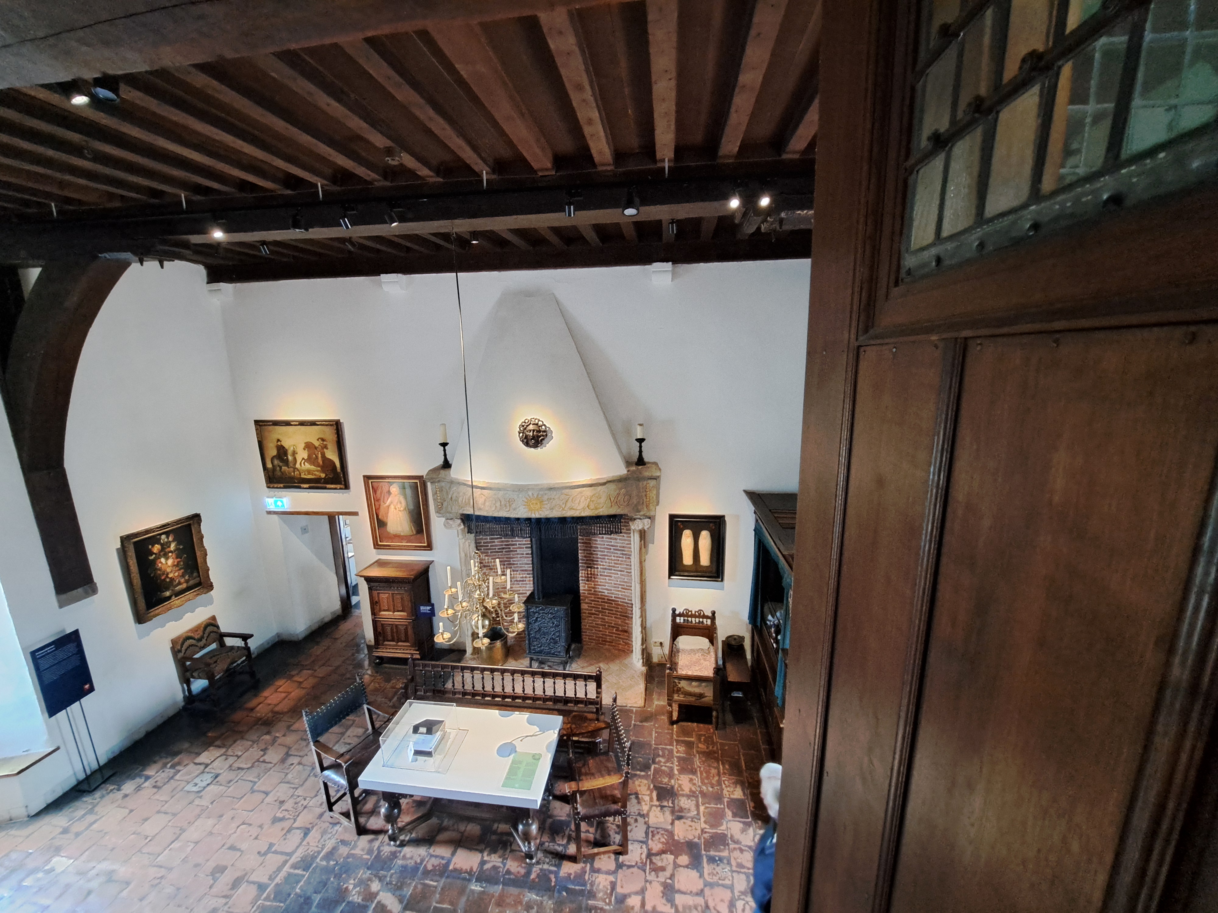 The two photos above right and left show you the narrow channel by which the Vecht River enters what is now the Markenmeer, which is now an almost-entirely freshwater lake. But if you click or tap to open and enlarge the map in the middle, from a display in the castle, you’ll see that until 90 years ago, both the Markenmeer and Ijsselmeer to its north used to be the Zuider Zee which was an open bay off the North Sea, with open flow of water both fresh and salty in and out. First, the Dutch built the Afsluitdijk (which I’d assume is the biggest of the many dikes the Dutch have built over the years – but haven’t yet confirmed) at the far north end, mostly for flood protection though it now also provides a direct road connection between North Holland and Frisia or Friesland. Then, in the 1970s, they did yet another dike that separated that larger former-bay-now-lake into two lakes, Ijsselmeer and Markenmeer and also connected parts of North Holland more easily with the newly-drained polders that are now in the province of Flevoland, without having to go through or around Amsterdam over land.