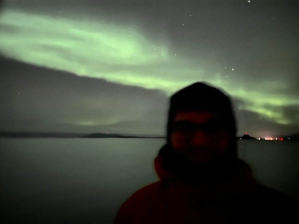 You might recall that my old friend Gary and I first scheduled our cruise in order, once in our life, to see the northern lights live. As I’ve shown through dozens, even hundreds, of posts since January – we saw so much more than just the northern lights, even with the days as short as they were. We did, as I’ve shown you only a few times before, also see the lights themselves, three nights in a row on which we were fortunate to have clear skies. I don’t have a fancy camera that allows a long exposure – but my plain old phone did capture several images, which are hard to make out if you have background light. This was our experience: the first time we thought we were looking at mist or smoke in the sky, until we noticed it was moving and changing shape frequently. The colors only emerge as your eyes sensitize a lot – or on the camera if you have a long enough or good enough exposure. At the bottom, one from Gary where the color is less rich but the lights are more visible than above or in my other small shots below.