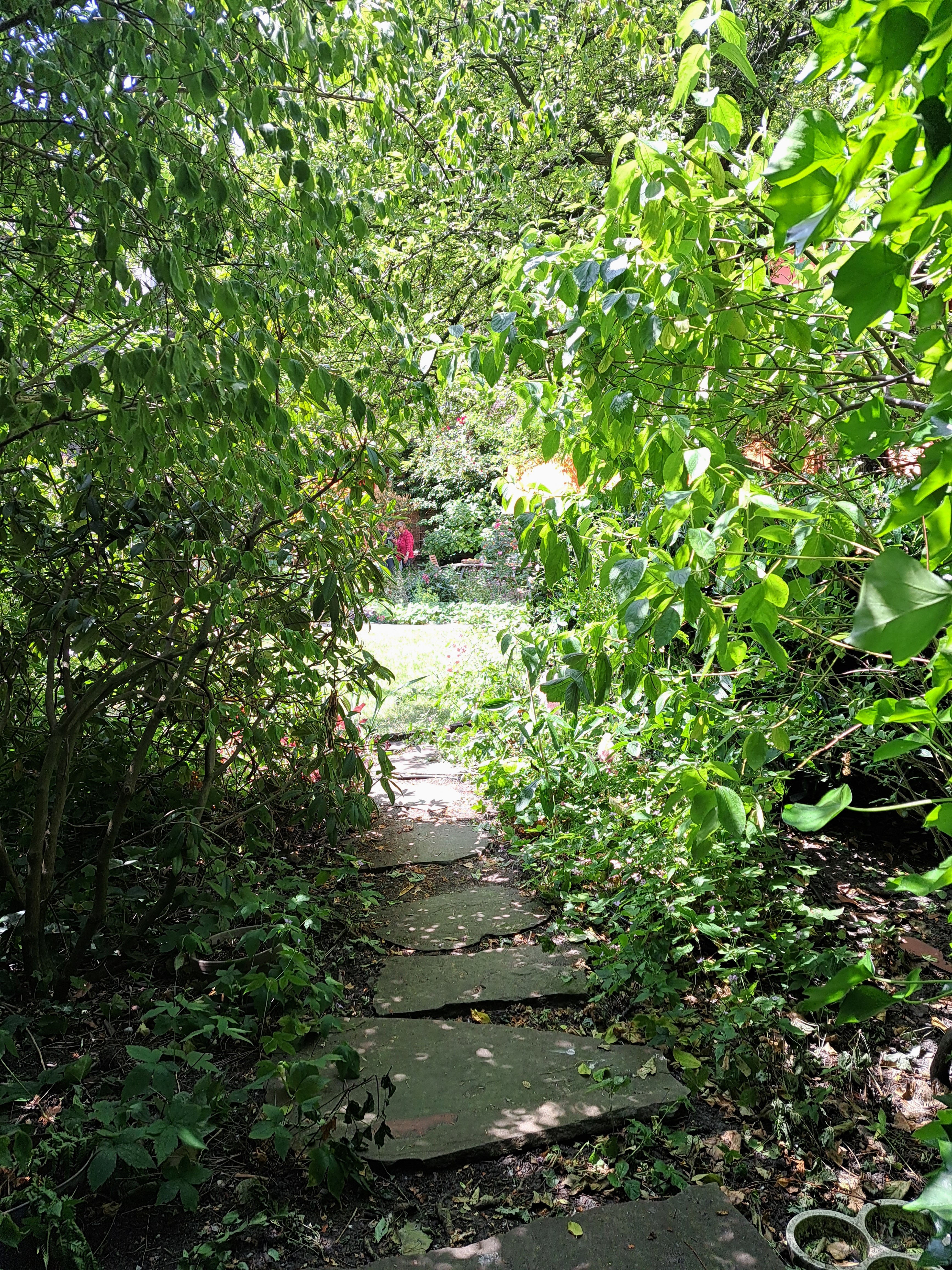 These images are all from the same garden, including the long corridor with doorways on both ends through which one accesses it from the street (you’ll see the green open-garden sign on the street-side door), and an extra door at the back of the garden, from which vantage point I took the shot above. Lovely layout 🙂