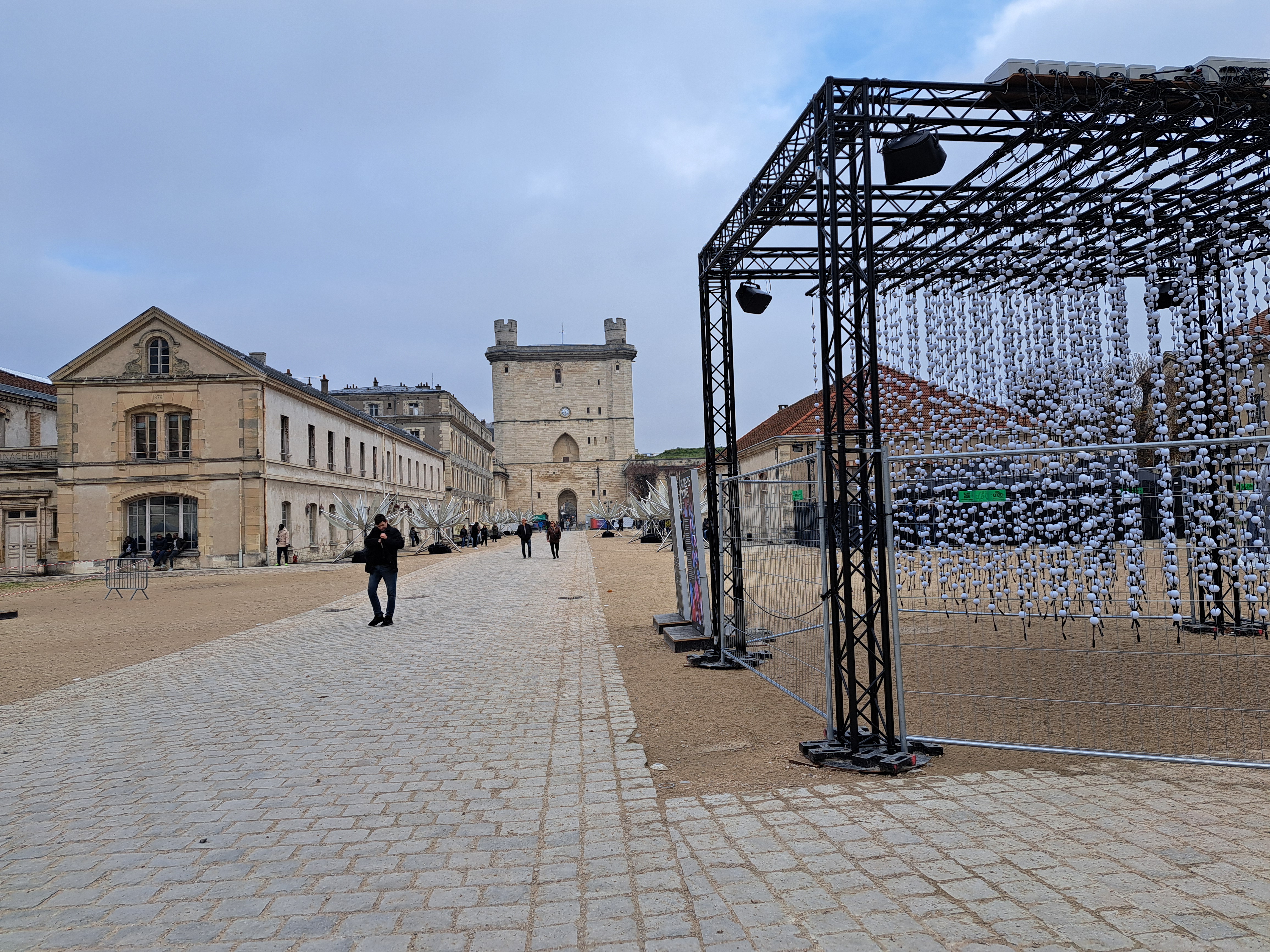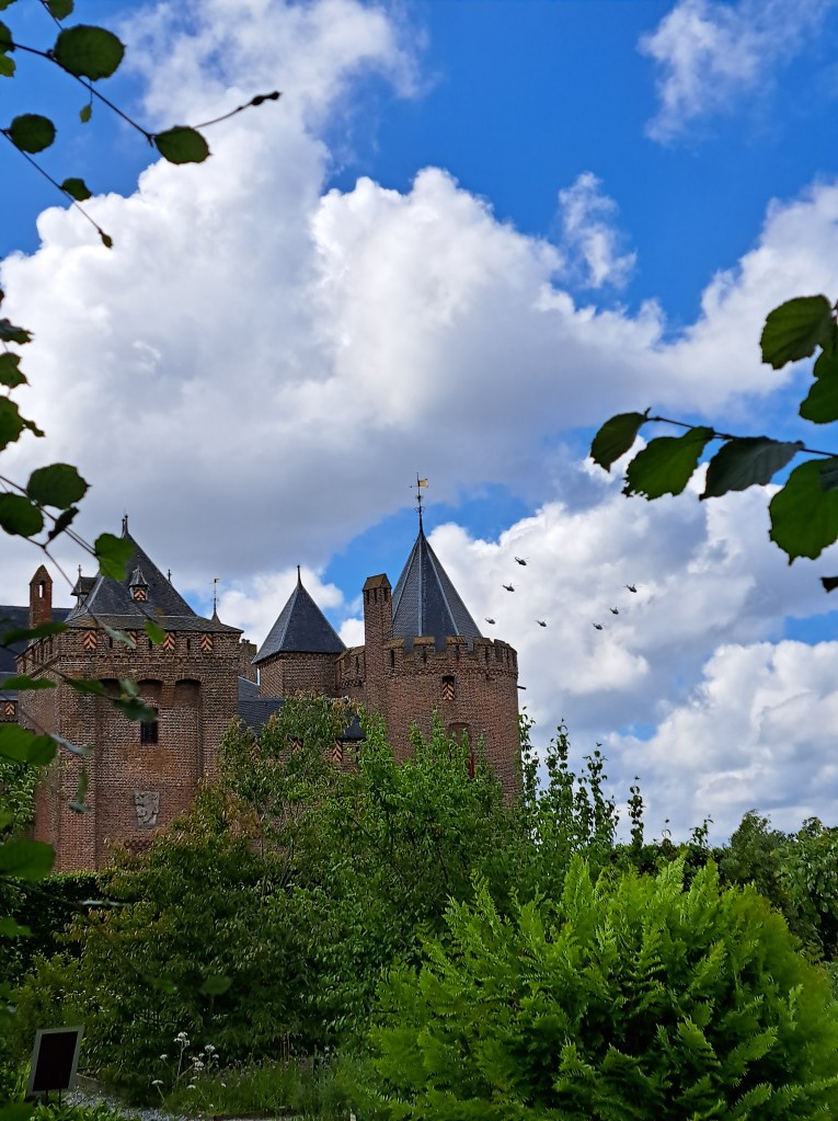 Above, you see one of the ways Muidersloot was adding contemporary art to the abundant history it always offers just being what is: installation art with a theme of rising sea levels. If you don’t get it, stop and think. It’s possible you’ll chuckle a bit. In other photos you’ll see various insect sculptures in the moat or on the grounds. While I wandered the gardens, I heard loud rumbling and noticed a pod of helicopters crossing the sky. Feeling all Apocalypse Now, I was torn between diving for cover and taking photos. The image below and a few more in the gallery demonstrate which instinct won. (And no, pods of helicopters crossing the sky are not a thing I’ve seen here before, nor do I know what this was about.)