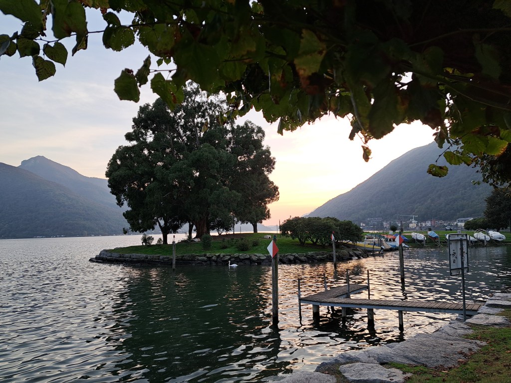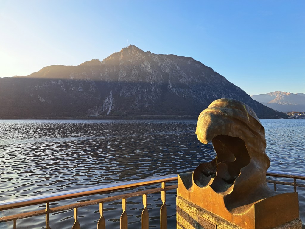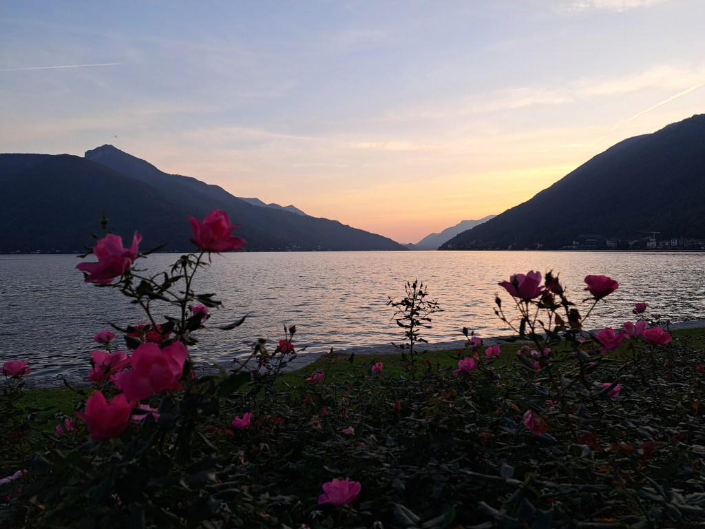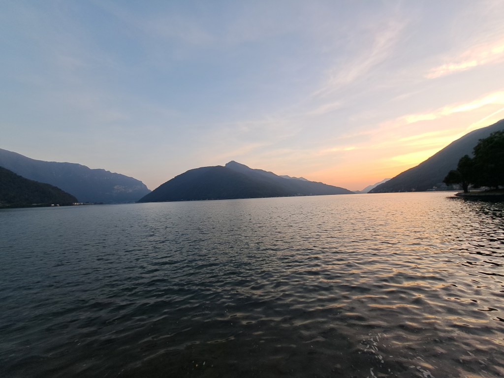 Not a camera error: the shadow versus light being shown past Monte San Salvatore by the setting sun managing to shine past some parts of other mountains south and west. As seen from the waterfront at Campione d’Italia, the exclave of Italy on this segment of Lake Lugano, after that cruise back from Morcote I mentioned in an earlier post :-).