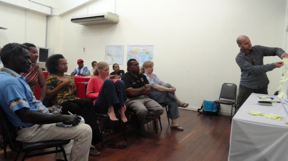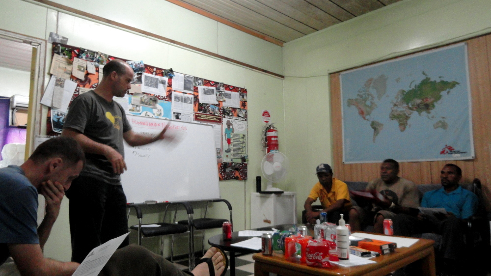 Our oldest project in PNG is in Lae — we work with the local hospital, running the Family Support Center which provides specialized care for survivors of family & sexual violence. For that reason, when we decided to hold our first-ever MSF field associative debate in PNG, we decided to hold it in Lae. People from our other projects, in Tari and on the island of Bougainville to the east of New Guinea, and also from the coordination teams in Port Moresby and Buka, all got together for some great discussions about our work here – focused on the topics of access and negotiation. You’ll see a few pictures of me leading discussions either at the main FAD in Lae, or at the mini-discussion we held here in Port Moresby on my second weekend here.