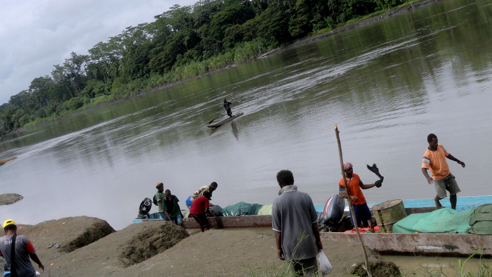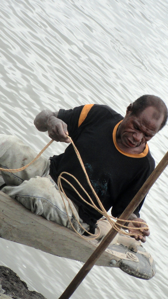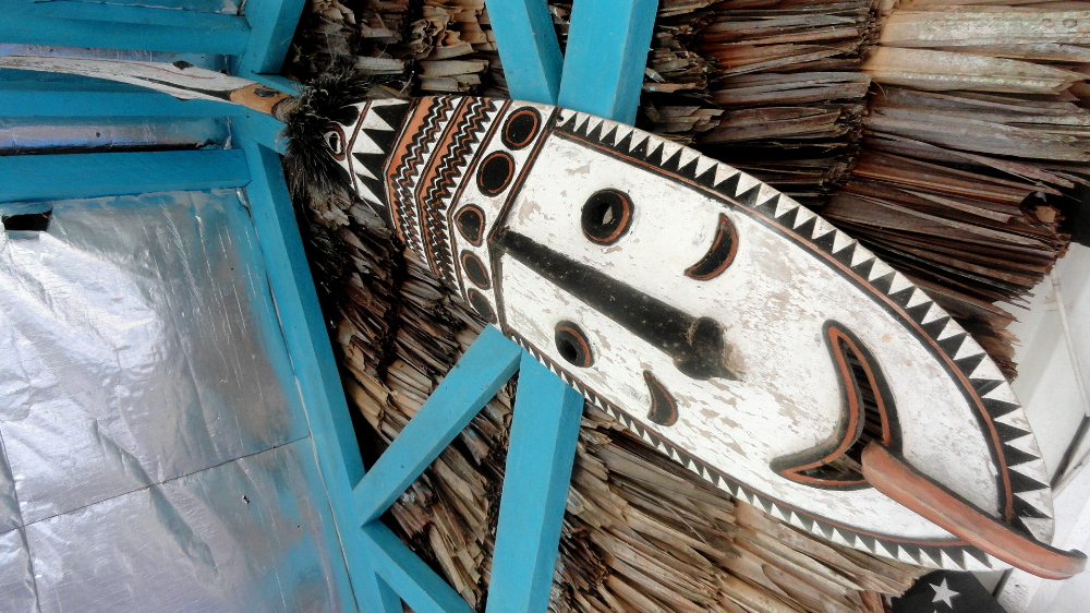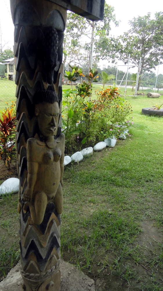 Look a bit closely and you’ll see carvings at the bow of that long canoe, above. This is Pagwi, the first place along the course of the Sepik where a road reaches the river. To the right in this shot, upstream toward West Sepik province and the PNG-Indonesia border where the river originates, are vast riverine region with no roads; to the south across the river is a large area of riverine villages and towns that stretches from the river to the foot of the mountains. We were doing some follow-up visits for the training support we provide hospitals in setting up a Family Support Center for survivors of family and sexual violence – and there are two hospitals in that area that we’ve recently worked with, so we took the chance to get out and learn more about provision of care in the areas.