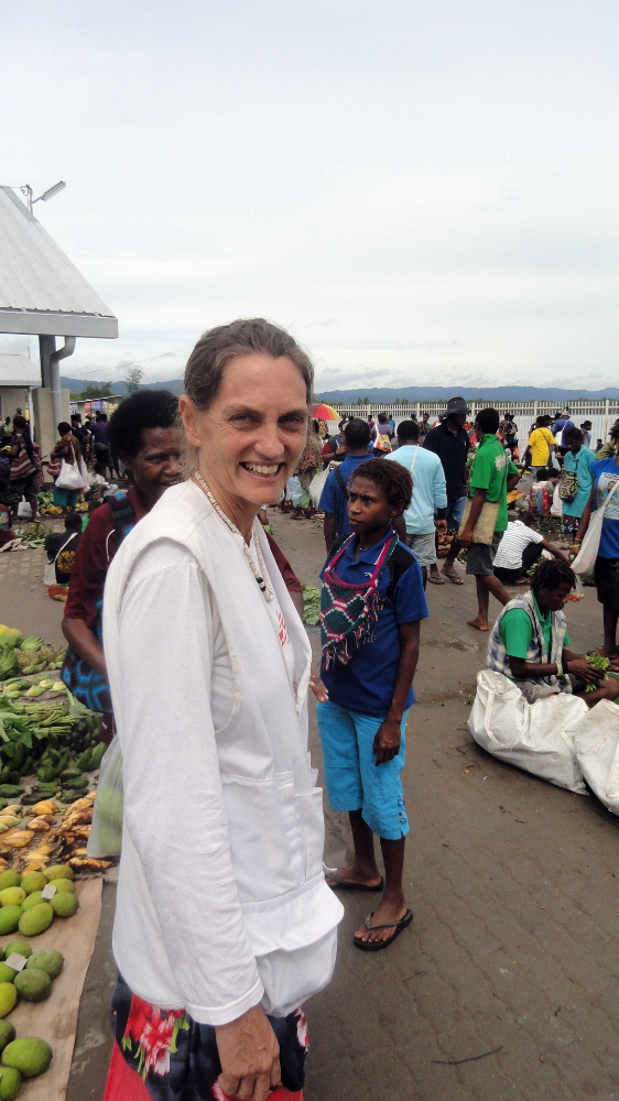 Second-hand clothing stores are all the rage in PNG – something many expats on our team love exploring. Above, Ruth is chatting with the betel-nut (buai) sellers along the road in Maprik.