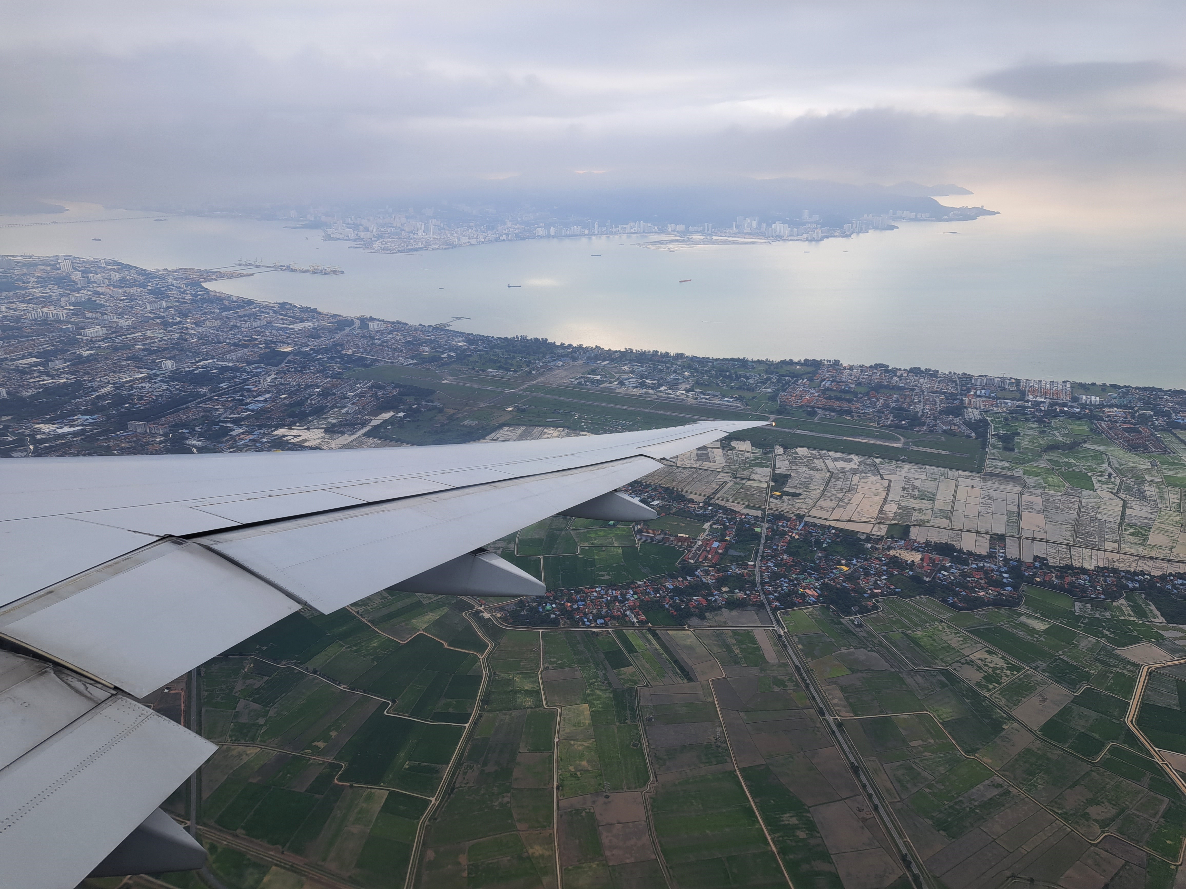 Penang Island from the mainland: above, as seen on 29th of November as we neared our landing; below, as seen during my flight from Kuala Lumpur to Yangon on the 6th of December.