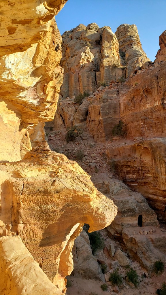 Many site names are misleading. Most of these buildings were tombs. The Treasury was so named because folks hoped / imagined that it held a fortune – not so 😊. The Monastery is so named because later Byzantine occupants carved crosses into the surface – but like most things in Petra, it was built as a tomb for important deceased Nabataeans.