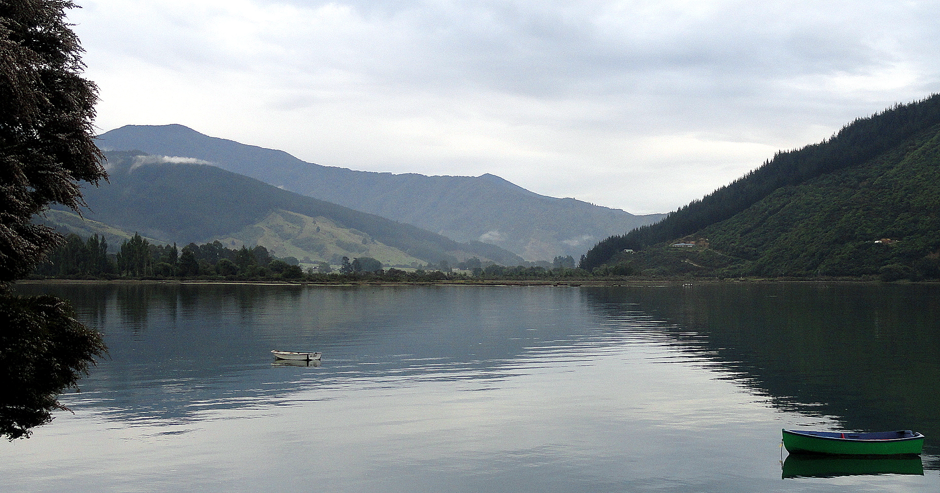 This is where we spent the last few quiet, peaceful, absolutely blessed nights on South Island, there at the tail end of 2013 with my mother and brother. These are the Marlborough Sounds; if you’re so inclined, google ‘linkwater marlborough’ and you will see exactly where on the map of the world the shots above were taken: at the base of the Grove Arm. With Howard and Gene, five years ago, we drove fairly rapidly through this area en route from Nelson to our Kaikoura Coast Trek, but I remembered it as a lovely spot well worth revisiting. Now I’ll remember it as one of those places on earth I could very happily live, or retire, if I could ever afford it. 🙂 A lovely mix of pastoral, agricultural, maritime, small-town, outdoor-adventure…you name it, you got it there from milk cows to fantastic kayaking and world class wines. (Wonder if NZ tourism will give me a cut for the referrals here…) Btw below are the panoramas giving you about a 280-degree view from the pier on which the above photo was shot.