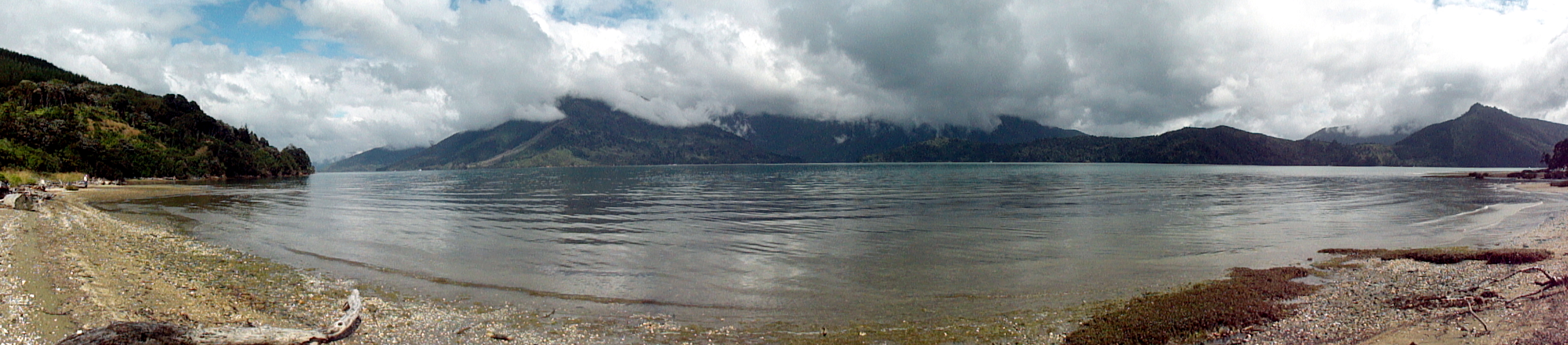 And here some shots again of the Cook Strait as we departed South Island and headed back to North Island: below, Picton Harbor from on board; and a few shots below the exit from Tory Channel into Cook Strait with North Island in the distance; and further down a panorama shot in which you see both North and South Islands from the boat in Cook Strait.