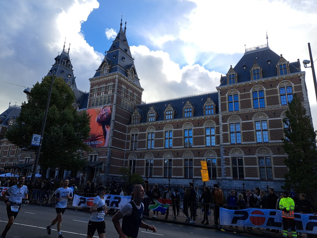 The past two weekends, my cousin(‘s son) Sam was on a visit with me here in Amsterdam. This meant I got out more as tour guide than I’ve been able to do lately, and on foot often enough that I saw things differently. Interestingly, the very last post in this particular series appeared just shortly before I flew out of Dhaka during covid, and in that post I actually referenced good ol’ Sam, who’d been a big fan of my various series and posts during the covid months in Dhaka. This is mostly half-marathoners passing the Rijksmuseum last Sunday, with a few of the last marathoners also reaching the last couple miles…