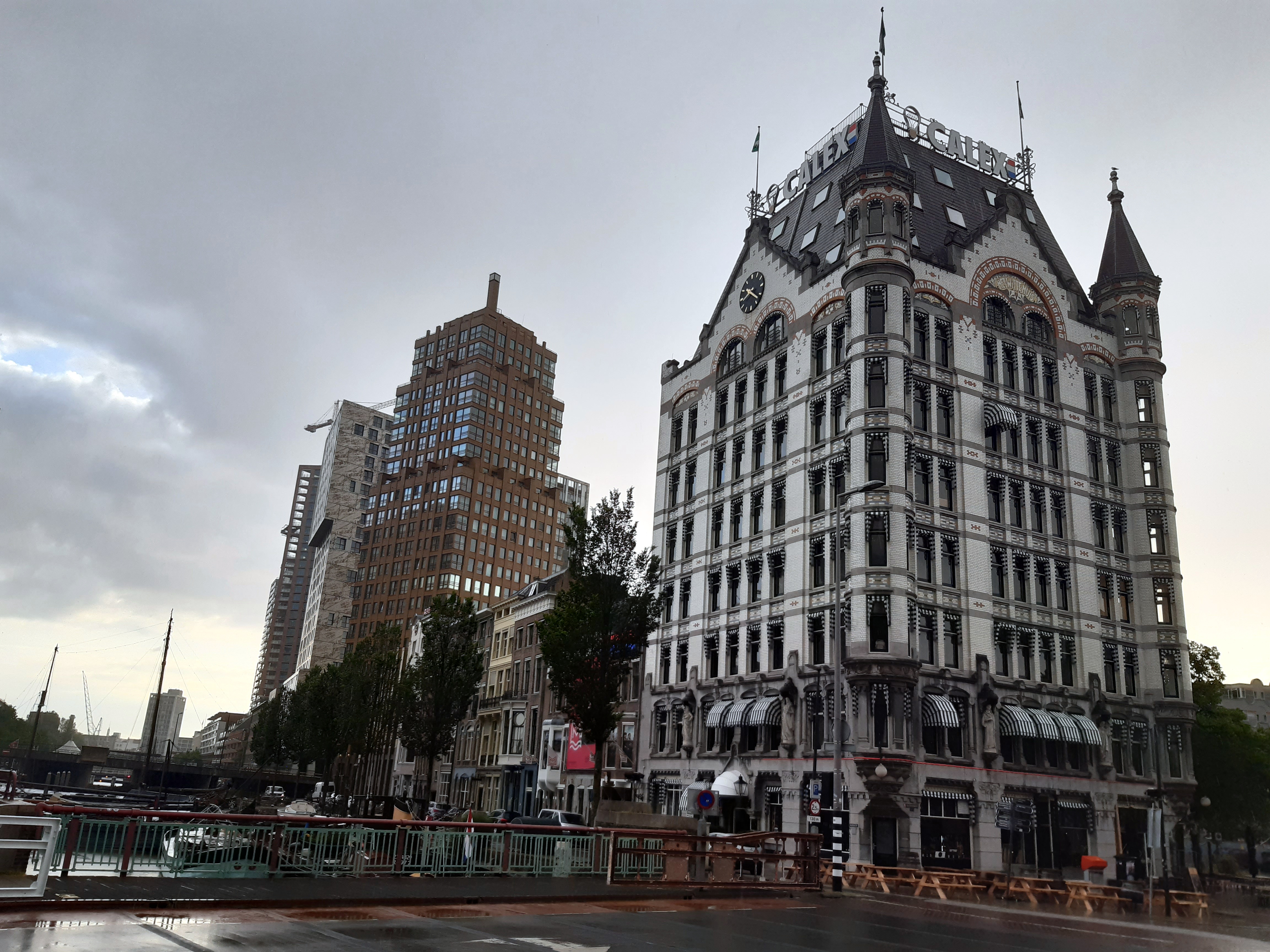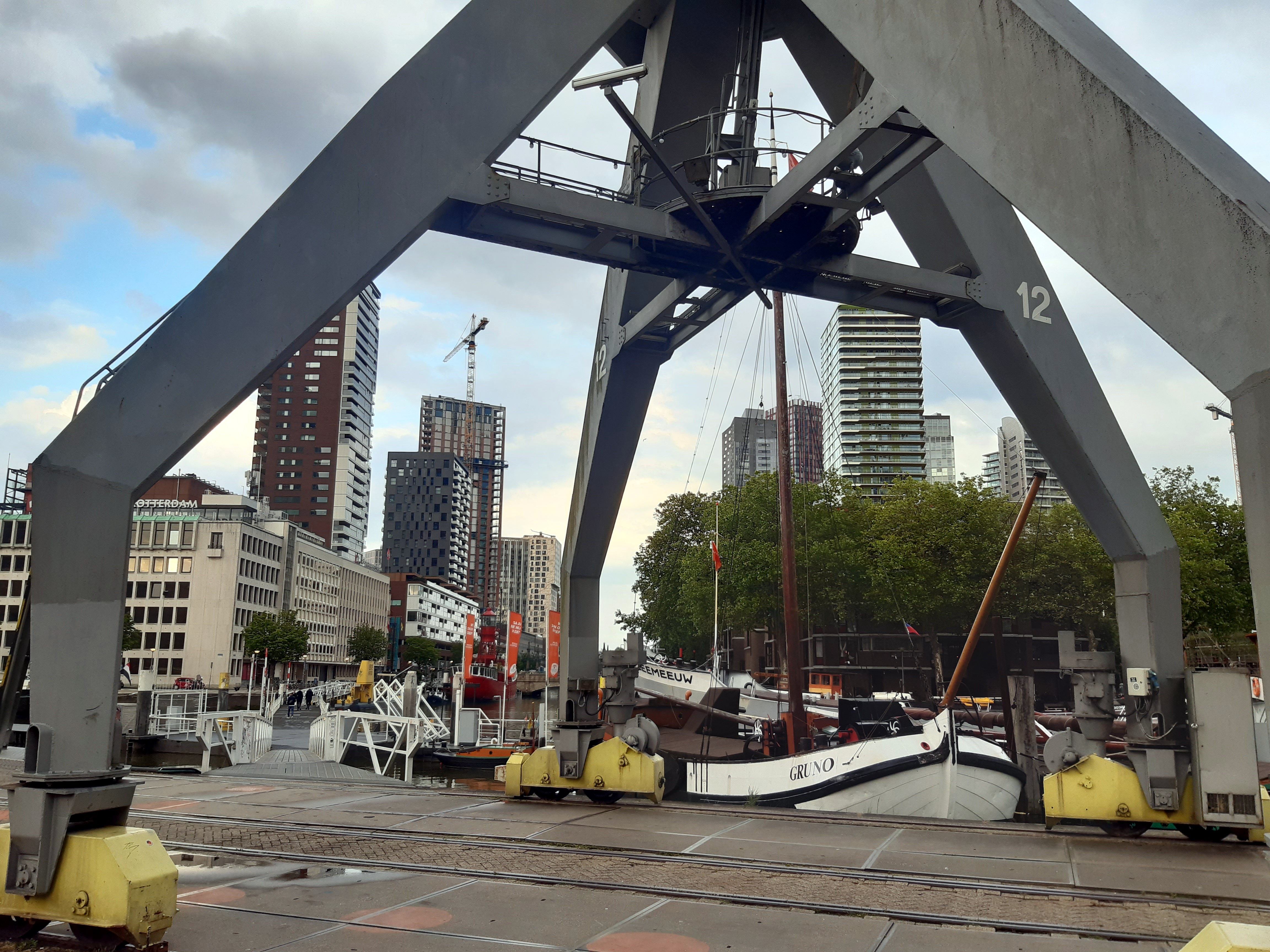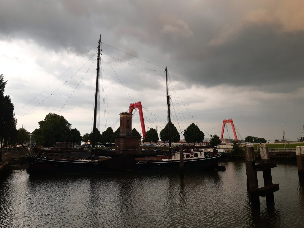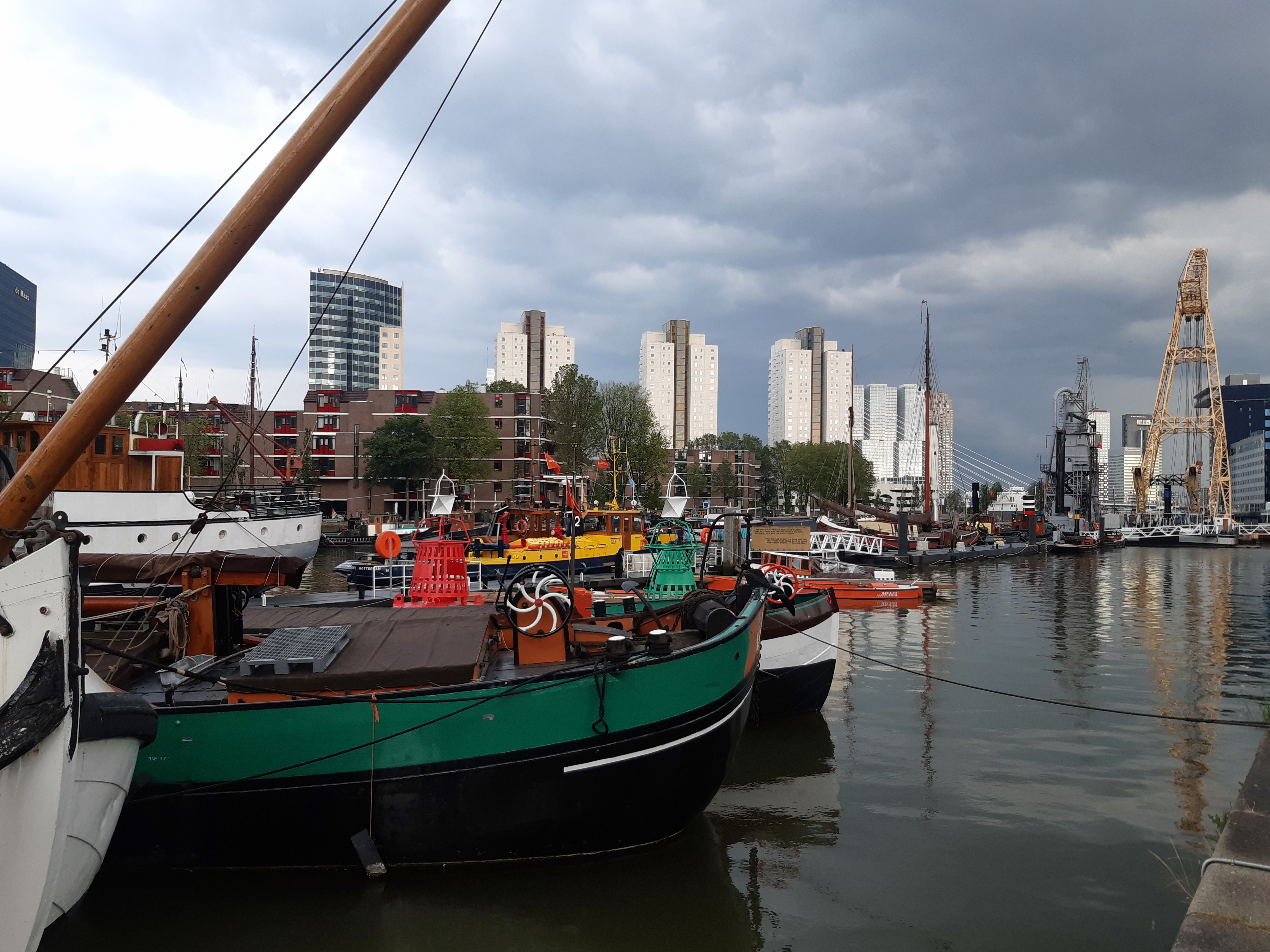 Rotterdam, one learns, is Europe’s busiest port and was until fairly recently the busiest in the world. It also has a long history of shipping, and in its urban center features both an indoor maritime museum (which I’ve not yet entered), and a living outdoor museum that you can walk through for free (as I did during the evening walk which yielded these photos), or do tours with information shared if you book and pay…I assume. Haven’t yet researched that part. And as you’ll see, some of the lovely older buildings did manage to survive WWII. I’m told that the one you see here was temporarily moved so that they could build a new tunnel under it, then brought back to its plot once the tunnel was constructed. Good engineers, these Dutch folks, eh?