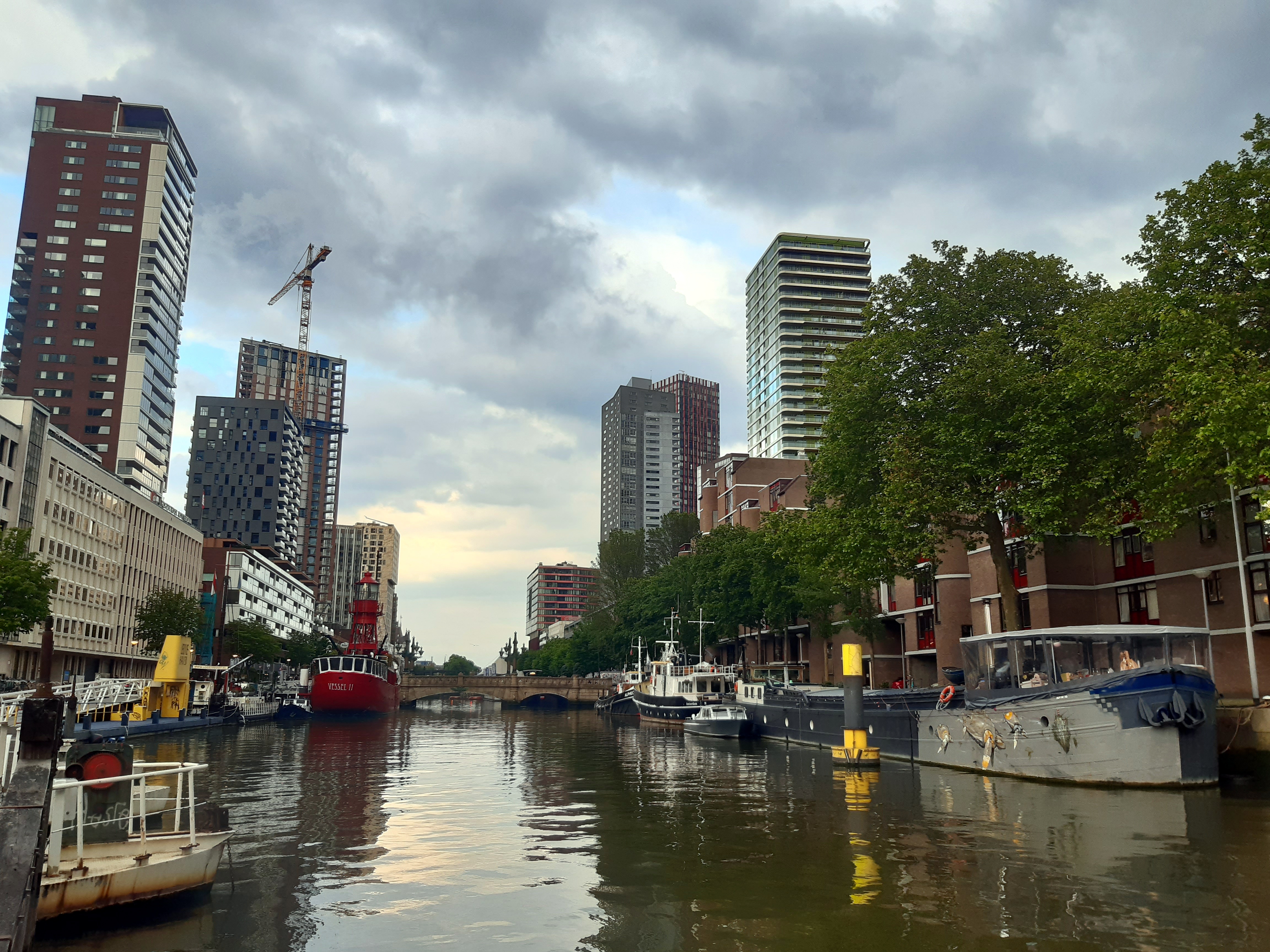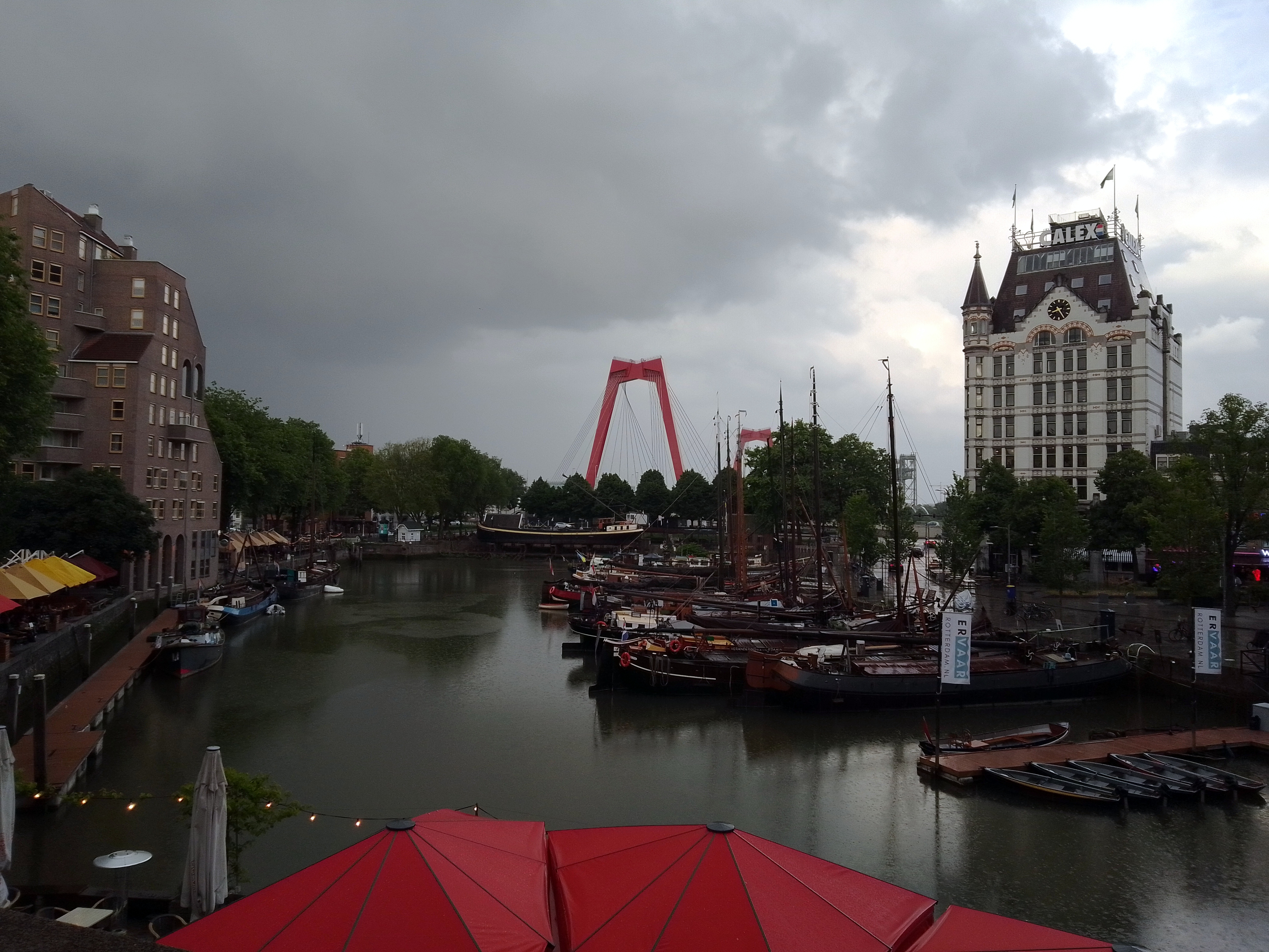 Yes, there’s air-bubble writing in that there canal. If you can tell me what it says, you’ll win my thanks :-). Rotterdam, as every Dutch person seems to know, is a much more hip and modern city primarily because it had to rebuild itself after being very heavily destroyed during WWII, so it decided to go quite modern in its rebuilt architecture. Stay tuned for more :-).