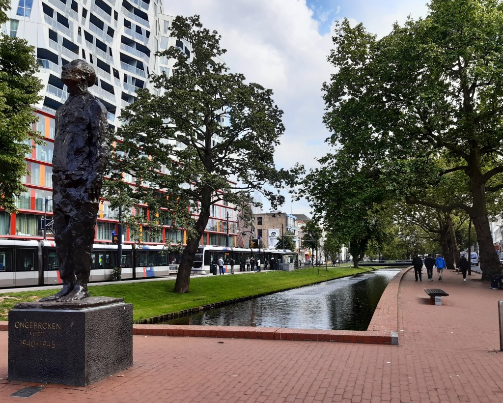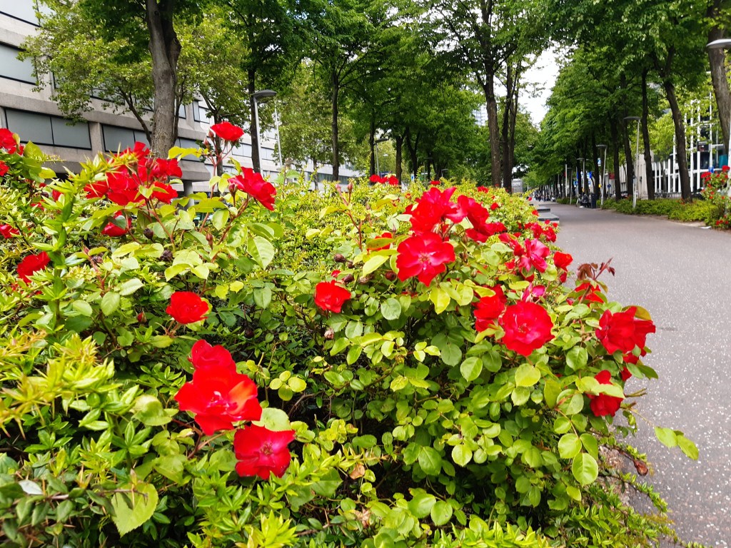 As noted in the last post, Rotterdam has a lot of funky cool modern architecture, often alongside some lovely old buildings that survived the war. This is an area called Museum Park – the tall tower is the most famous museum, called apparently Museum Boijmans Van Beuningen, closed for renovation for a few years now. The mirrored round building is the “Depot” where ordinarily the main museum houses works not currently on display. At the top left is Het Nieuwe Institute, showcasing design and architecture. The reflections of large groups of school children out for some special evening of school-kid activities, all moving in real life and reflected below the mirrored skyline in the depot building, made the experience honestly rather magical for me 🙂