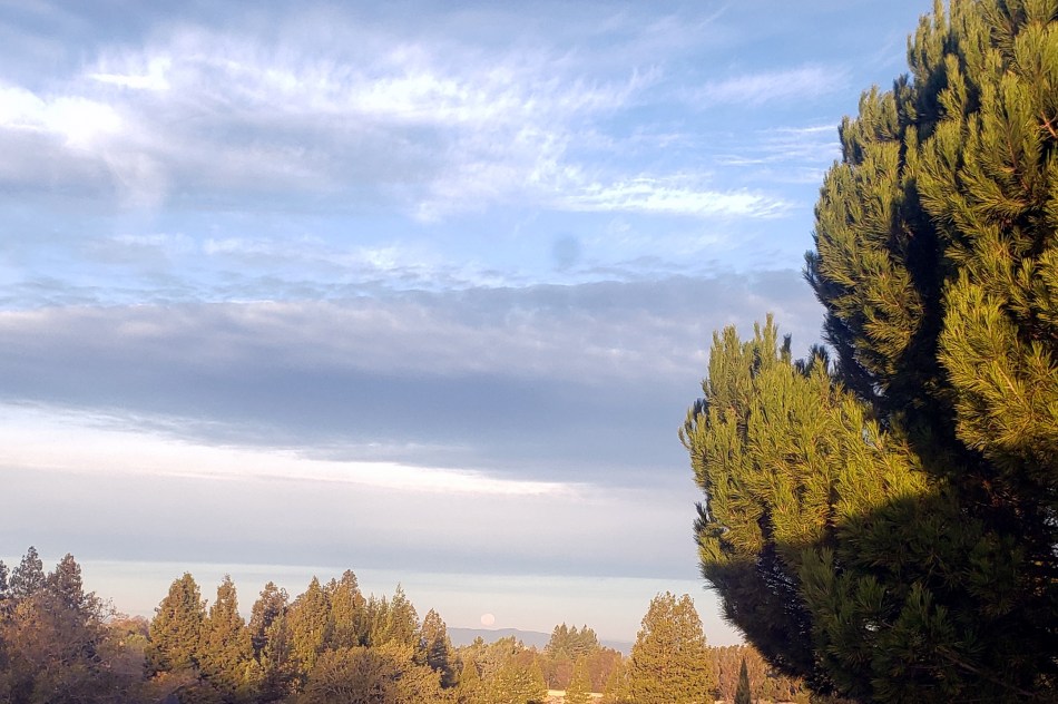 Of course no photo can ever do justice to the full moon setting as the sun rises on the other side of the horizon, but perhaps this gives you just a sense?