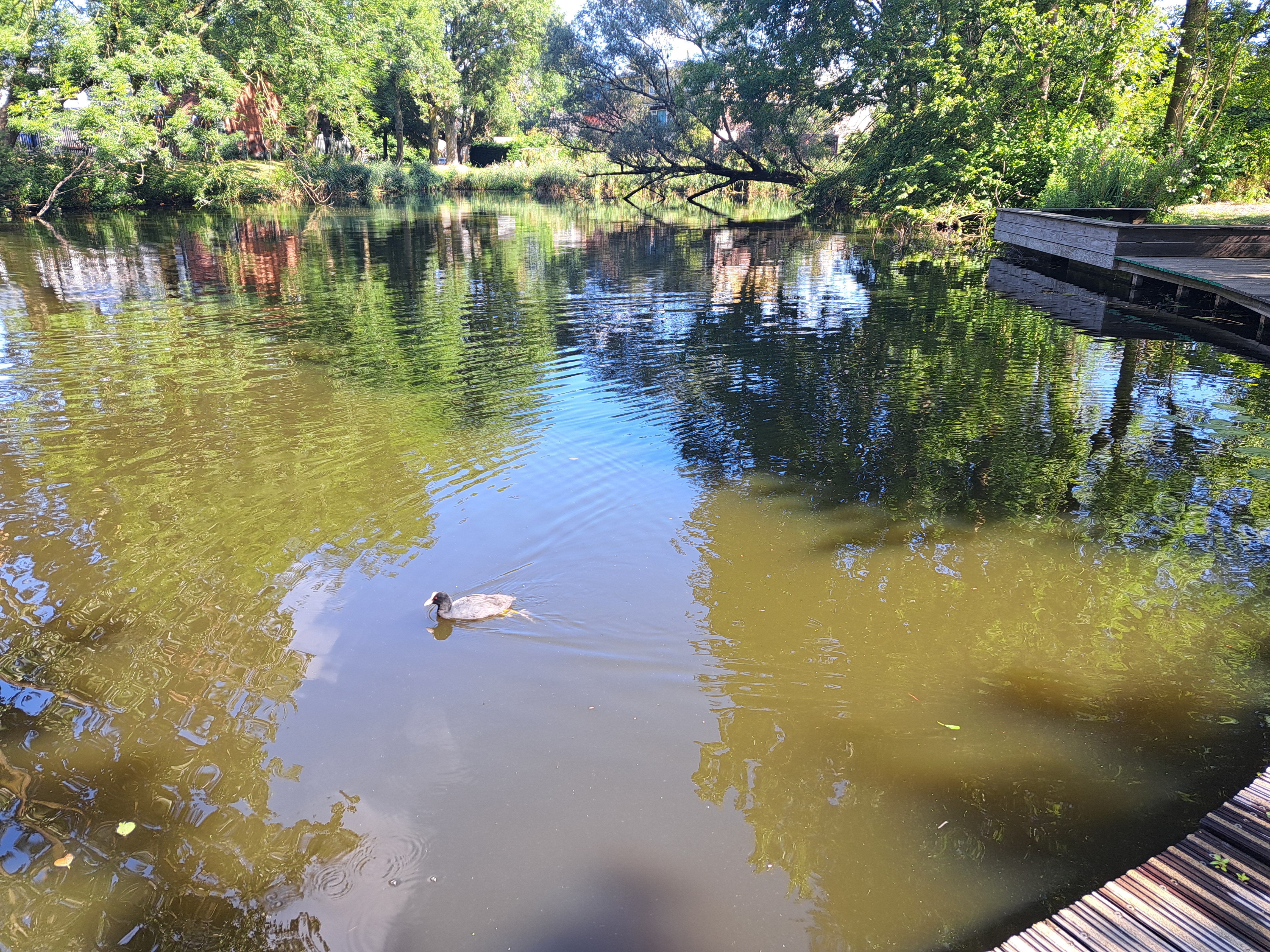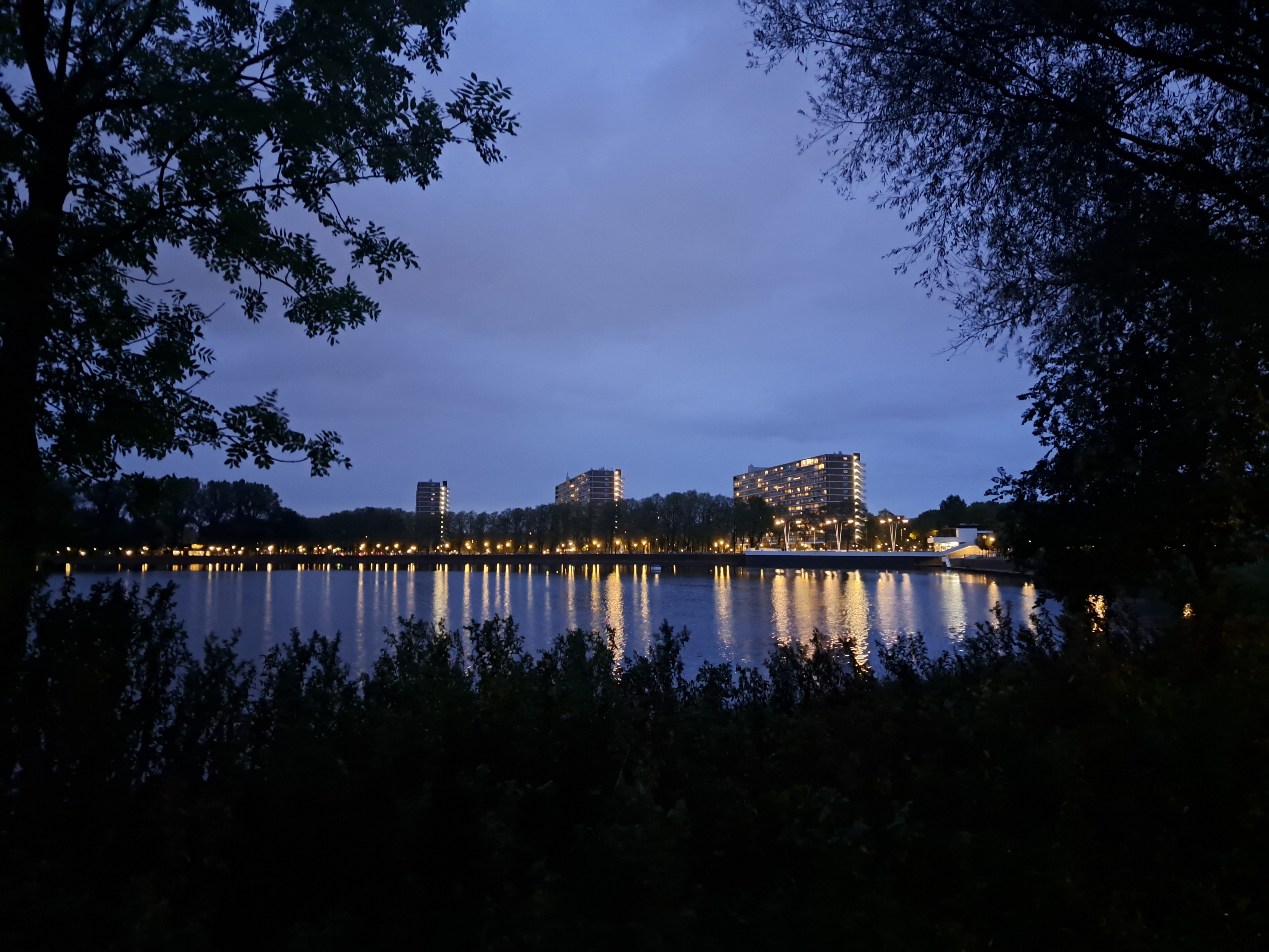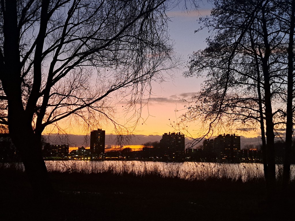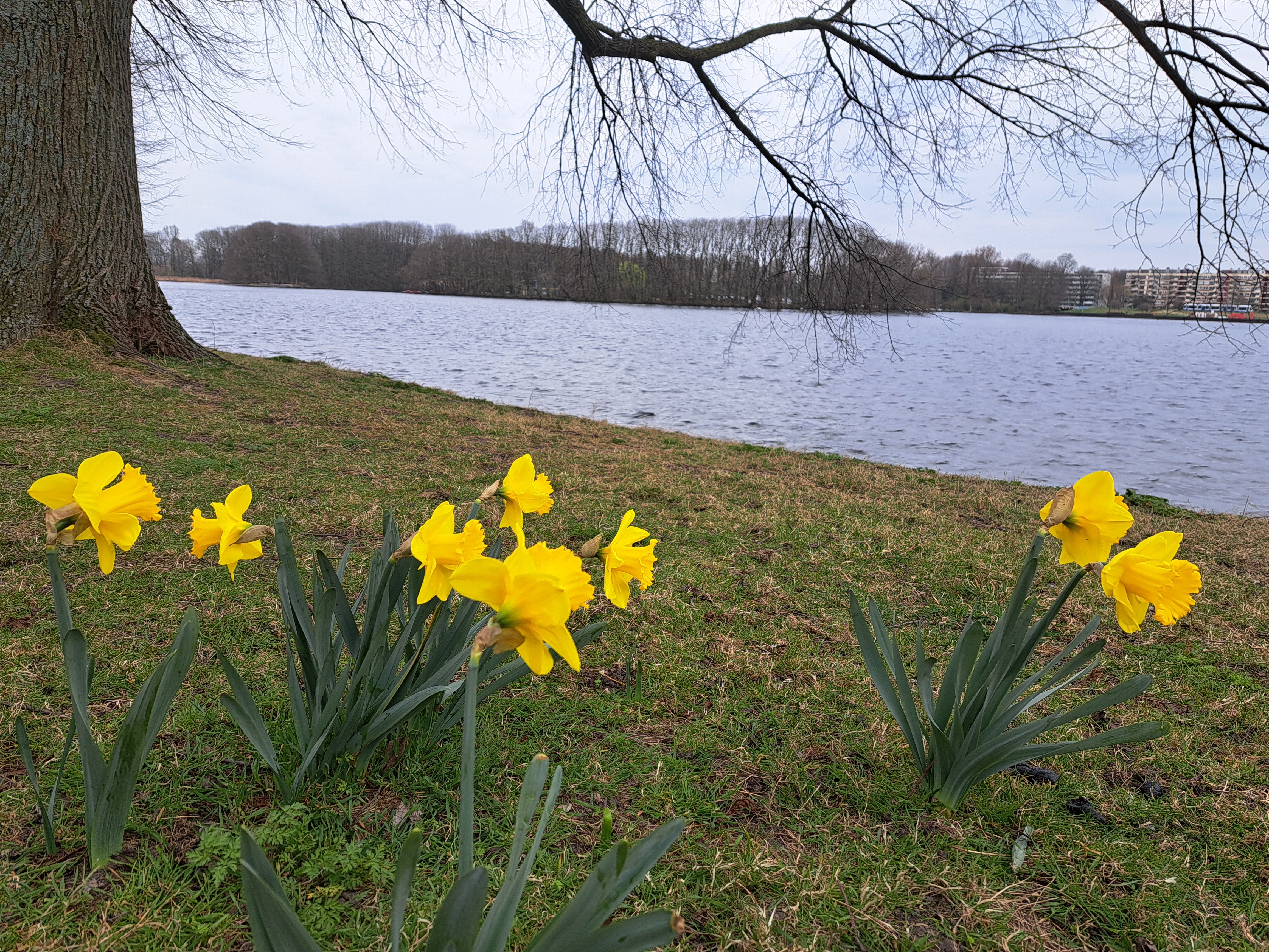 At the top of the above photo is a bit of a hidden little island that’s tucked on the edge of my local park, Sloterpark. Curious about it, I walked over to see that it’s some kind of youth club recreation area, and though I wasn’t able to photograph them well, I’d like you to imagine a dozen or so teenagers zipping through the breaks in the trees on mountain bikes. I think they’ve turned it into a mini mountain bike race course or something. Below are the usual-suspect islands along the edges of the main Sloterplas flood-control & canal-navigation lake next to which I’ve lived since August 2023.