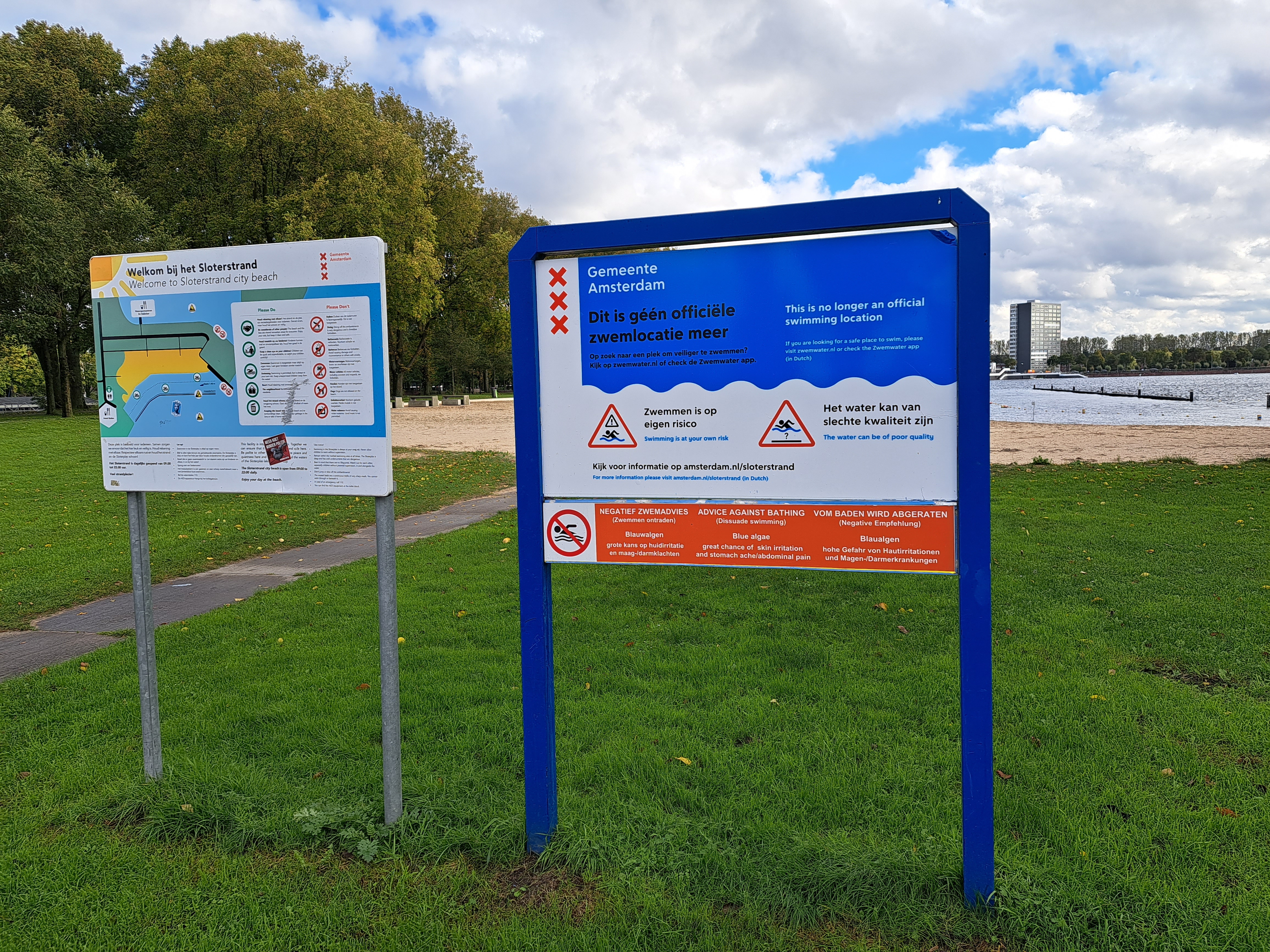 Indeed any time I’m desperate for an island to fill a slot in this particular series (it happens – remember this one?), my life got **way** easier when I moved into this place. There are two islands visible from this vantage in my current home: both are around the middle of the image, near the far shore of Sloterplas, which is the name of this lake. The closest one is immediately in front of the large lighted building above, which happens to be the swimming complex where the Dutch national team trains. Above was a pre-sunrise full moon in late September; just below dawn clouds the morning after the beautiful sunset at the bottom.