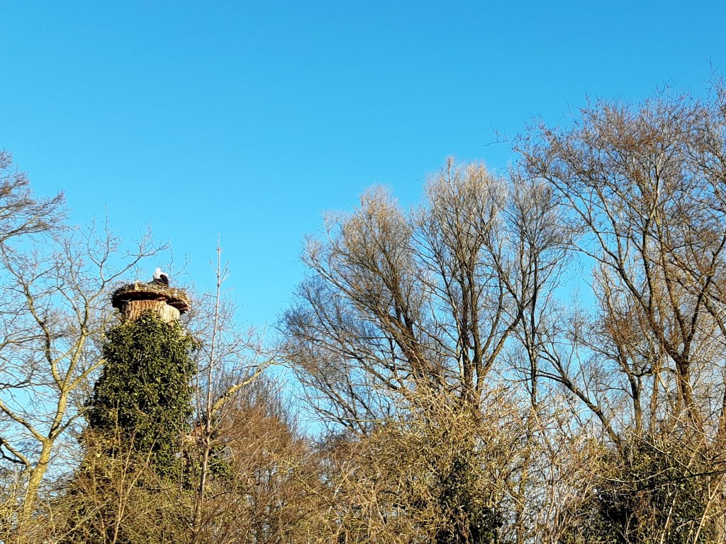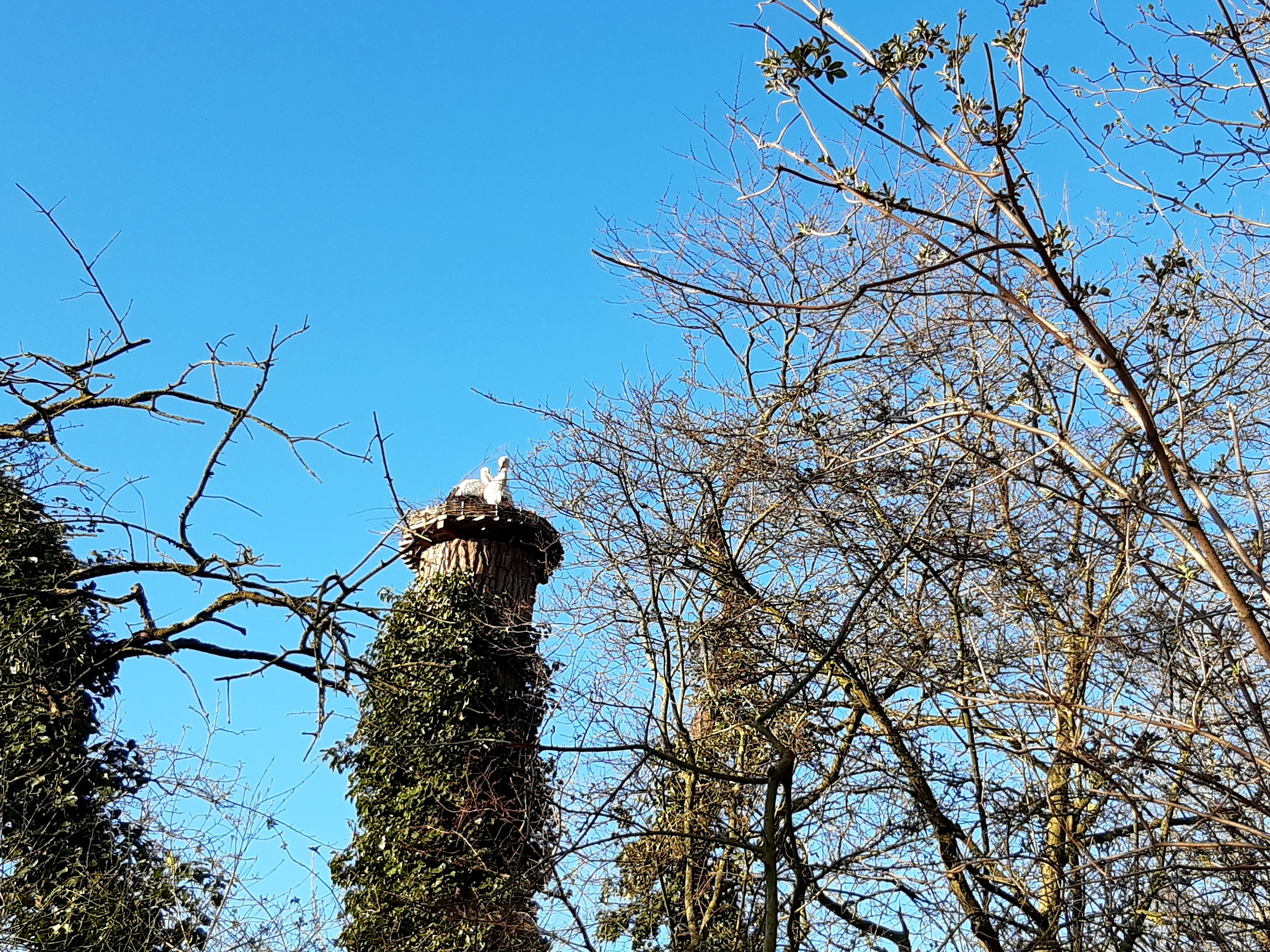 I’m reasonably confident these are white storks, and I believe their presence on the platform also answers questions my cousin Maria (hi, Maria!) asked about similar platforms which appeared in photographs from other posts late last year. I can’t state with certainty that all such platforms are intended for or solely used by storks, but I expect they’re intended for and used more by storks than any other type of bird. You and I wondered if it was maybe ospreys, and I’m afraid I’ve not yet gotten a book that’ll tell me which birds ply the forests and waterways of this corner of Europe so I’m not even sure if ospreys are found here – haven’t seen any myself, yet, but I’ve not really been looking yet. I am confident storks do, and this is the first pair I’ve seen. They really do clack their bills and communicate with each other a lot! If the left-hand photo below, you can sort of make out this platform in the middle near the top of the photo.