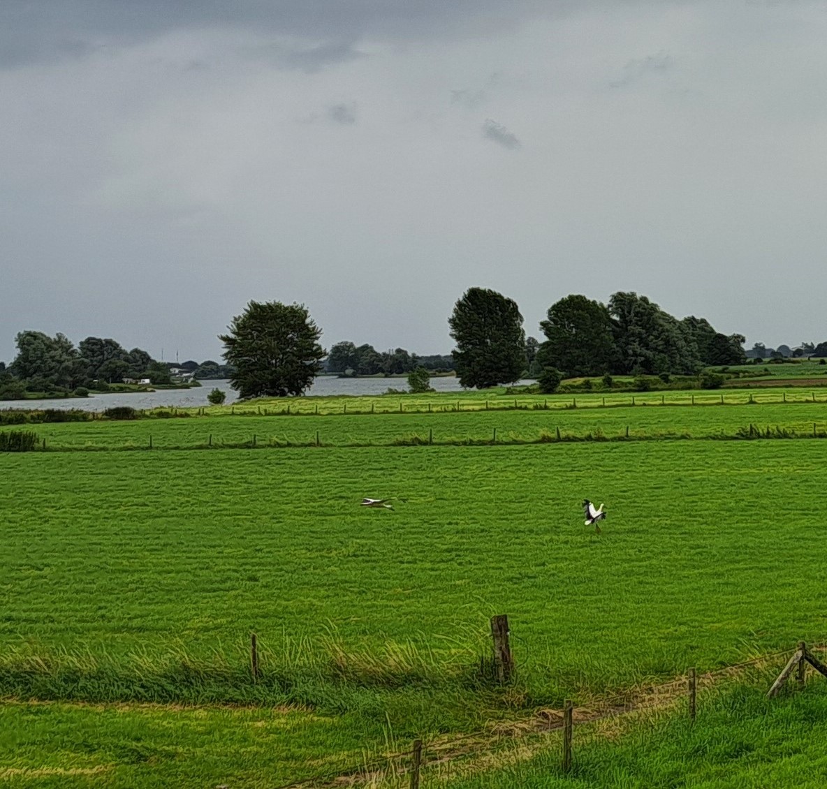 After that week I spent working-remote from Heusden in early July, I biked (as the good, wannabe-more-Dutch person that I am) with my luggage in the front basket on back to Den Bosch for a lovely lunch w/the friend who’d initiated that whole house-swap thingy then the bike-on-train back to A’dam. This pair of what I believe to be white storks was hunting food in the fields between our bike path and the Maas / Meuse, so I photographed them a few different times as they and I were moving the same eastward direction.