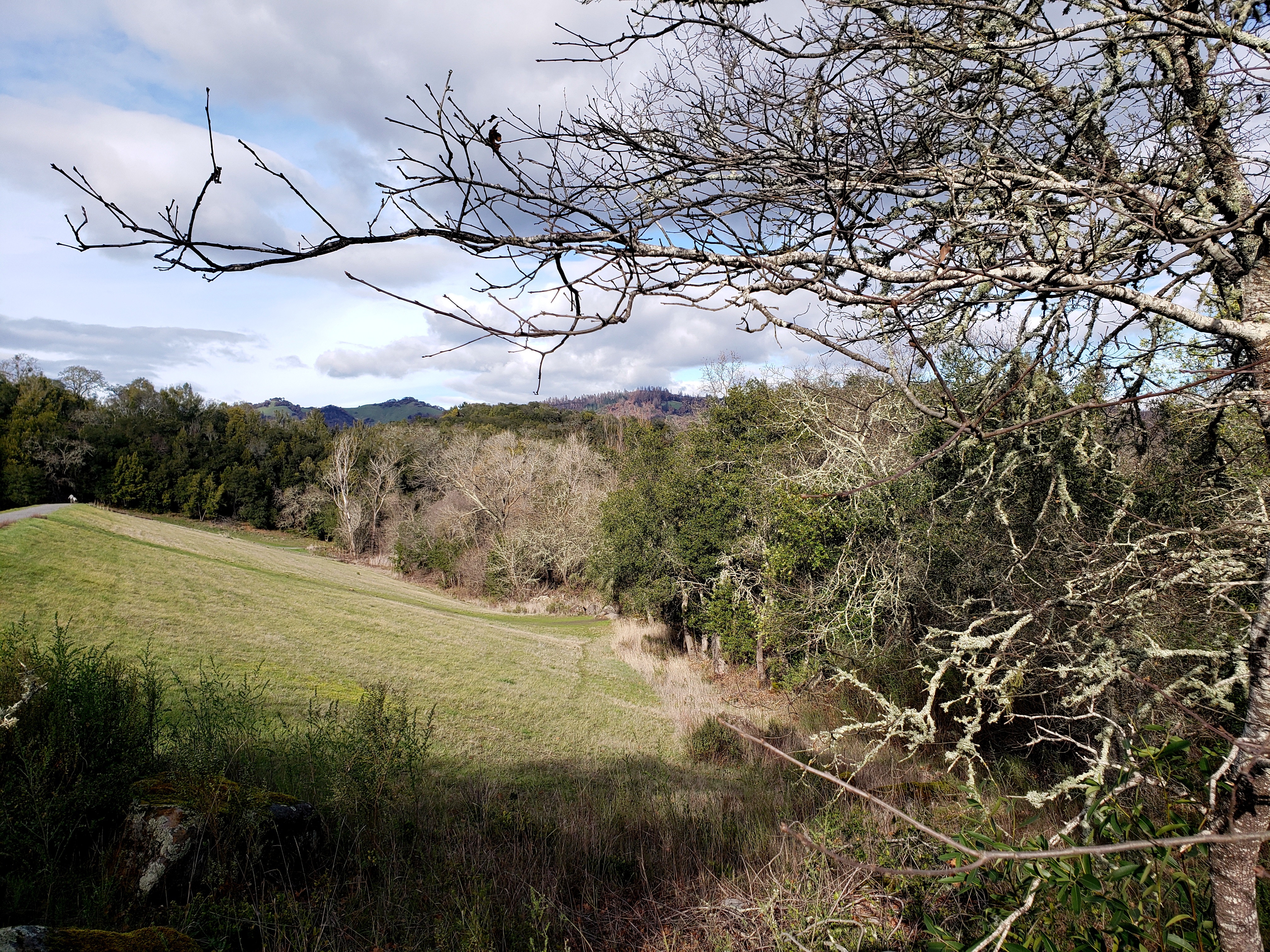 Although trees around where I stood when I took this shot *did* burn in the Nuns fire in 2017, the “burn” part of this photo is on the Mayacamas ridge in the distance – which, when I took this photo late last year, had just been burned again in the Glass Fire, after experiencing the Tubbs fire in 2017 at the same time as the south side of the valley, from which I took this photo, was burning in the Nuns fire. I remind us again that Santa Rosa hadn’t seen major immediately close forest fires for a few decades prior to 2017. Now we realize that with climate change, this is our life, and we rather desperately hope that both public and private policy and behaviors will speed their pace of change while we can still reduce the longer-term impacts on future generations and livability on the planet…