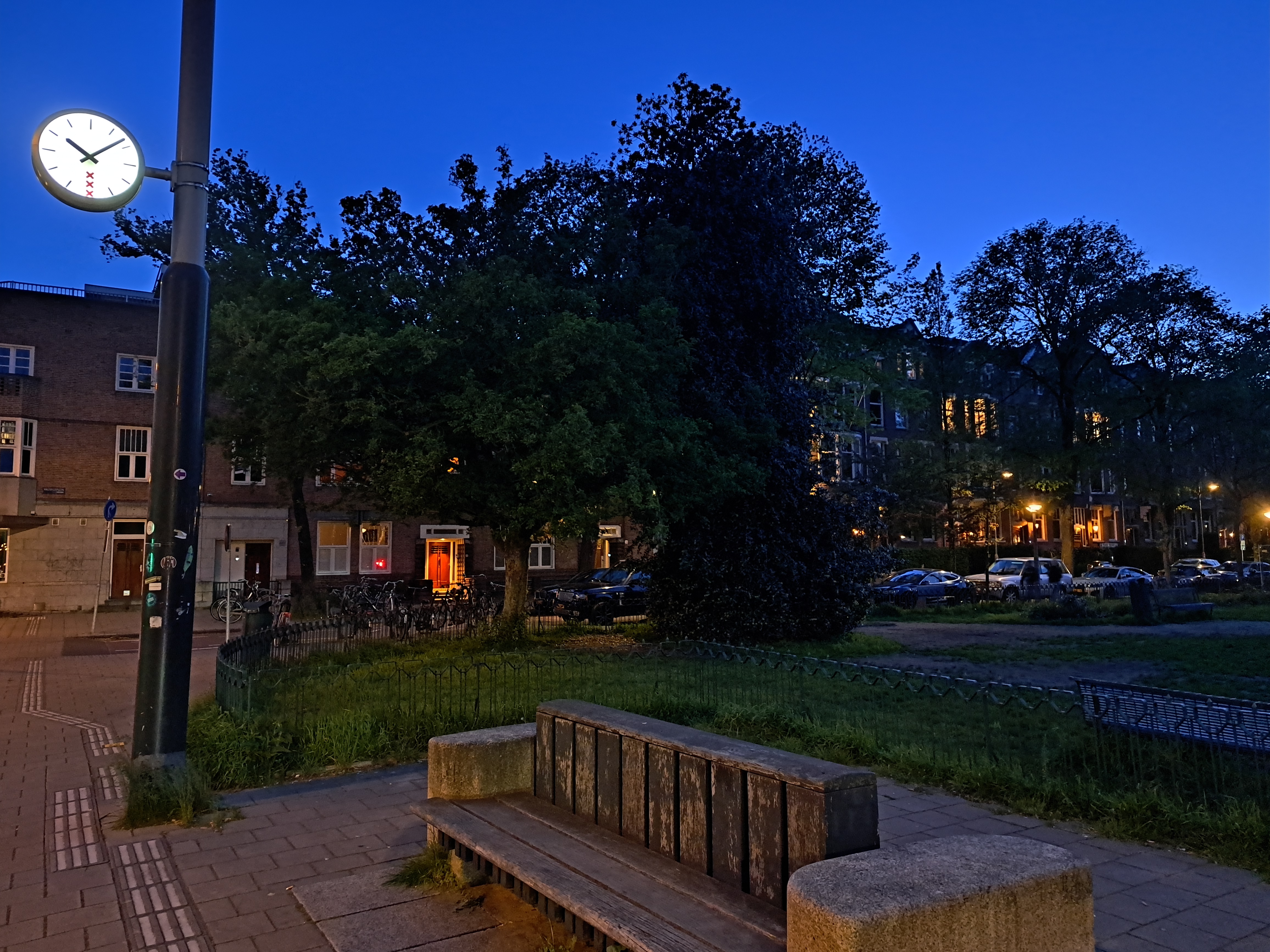 Though the long days do limit my exposure to city lights, they also give me more enerty to notice things like the glorious lingering light in a 10pm / 22:00 sky, and the city clock on Valeriusplein, as I walk home from another lovely concert at Concertgebouw :-).
