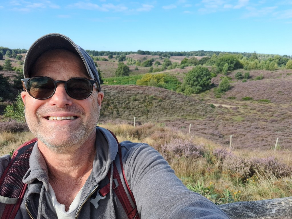As noted in an earlier post, I biked through the Veluwe Zoom national park as part of my lovely and, may I say, rather adventurous-feeling bike ride from Busloo down to Velp, which was the last of three places I spent the night during my lovely low-carbon week exploring the Veluwe region at long last. Above, the paved bike path on which I entered the park as we descended a lovely long hill from the Loenermark park just north of it. Below, pics of various other things I saw en route from Busloo to Velp, including one of the rougher-path places with my own luggage strapped into the basket in front of my bike. 🙂