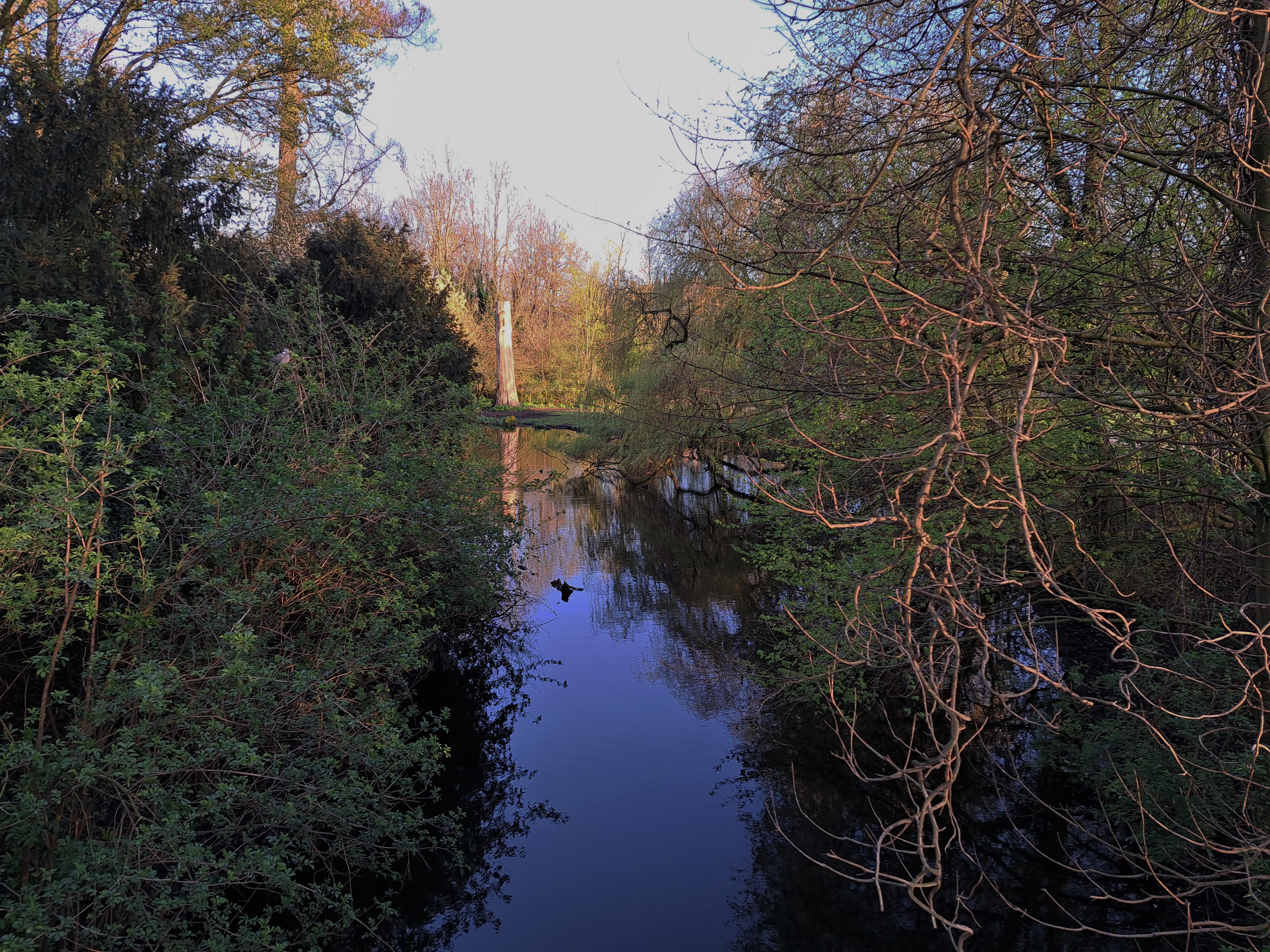 This one is a bit more obviously a little island; I’d just never noticed it before. These must be heaven for the birds and small mammals of our urban park, since no one boats and I’ve never seen people swim in these canals, and dogs only going in to retrieve sticks…