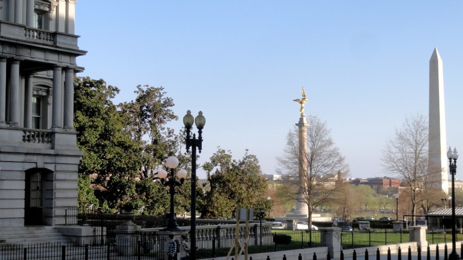 A farewell shot of the capitol dome behind the Washington monument. May American politics find a measure of sanity and civility while I’m away.