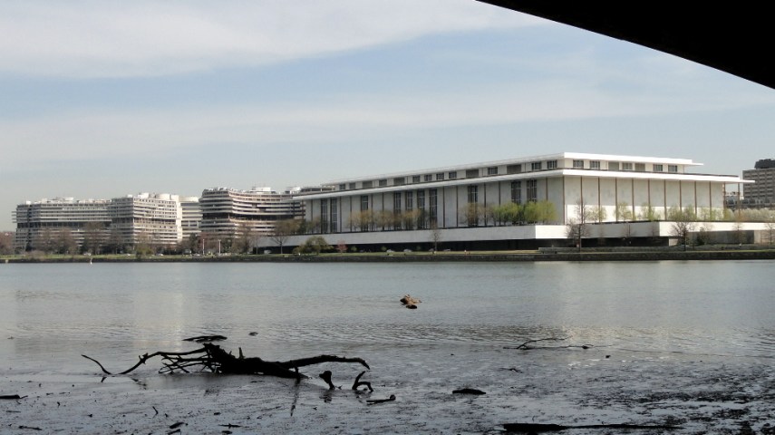 One of the more unusual monuments is Theordore Roosevelt National Memorial Island, to which I went both in honor of the man who launched our national park system and was the first political leader to recognize the importance, in a nation clearly growing at a very rapid rate, of setting aside open space for future generations to enjoy and for the protection of our natural heritage…and also to remind myself that Republicans have not always been as willfully ignorant, greedy, and dishonest as they seem now to have become. Below are two shots taken from the island; one shows the Watergate Hotel (yes, site of that infamous incident from which so many later government scandals around the world have drawn their name) as well as the Kennedy Center for the Performing Arts (built to honor JFK of course).
