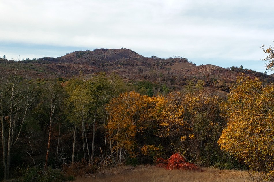 So we’re getting a bit more rain yesterday & today: Santa Rosa itself may reach the magic inch of rainfall before today is out. Thus, I’ve decided it may be safe for me to post these remaining photos I took in the days and weeks after the Glass Fire exploded into Santa Rosa over the Mayacamas Mountains. (Safe, in the sense that it’s less likely yet another fire will explode over the mountains. Though one really never knows, these days…) Somewhere in each of these photos you can see the burned ridges and eastern slopes of the range that separates us from Napa county, the view I see from my home, from my bike rides and hikes around most of this central part of the county. Most of it’s what I called twiced-burned, in a post not long ago.