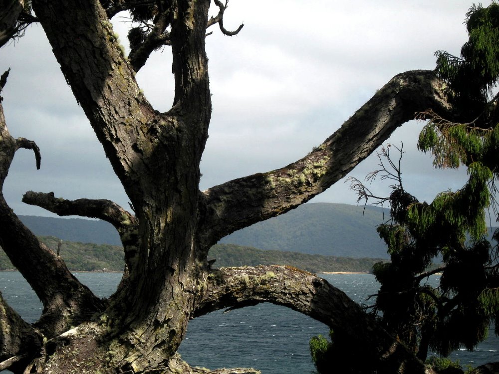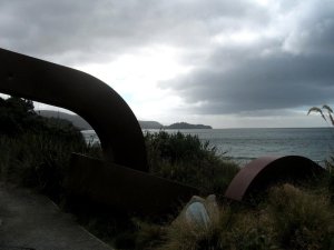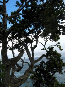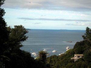 Rakiura, or Stewart Island, is the third-largest of NZ’s islands, and it is (while still of significant heft) a very great deal smaller than either North or South Island. (Get this: the South Islanders like to call South Island ‘The Mainland’ since it’s bigger than North Island. Umm, guys, you’re both islands. No mainland here. Deal.) Anyhoo — Rakiura is now mostly national park, aside from a bit around Oban, the only town with all of 380 inhabitants at last census (there are maybe 15,000 kiwis on the island — the birds, that is) and some chunks that are Maori tribal lands. In Maori legend, there was a mythical man who, from his canoe (South Island) fished North Island out of the water; Rakiura, in this telling, was the anchor he threw over to anchor his big canoe when he realized how big a fish he’d hooked. Hence the chain, below; there’s also a chain on the South Island, near the town of Bluff. Rakiura is known above all for being more free than the rest of NZ of the scourge of mammal predators that have destroyed many of NZ’s native bird species. Therefore one can see, here, abundant native parrots, parakeets, little hens and other such birds which are decimated on the two larger islands. I had a lovely quiet two days at the South Sea Hotel in Oban, and walking the streets and trails of town and Ulva Island.