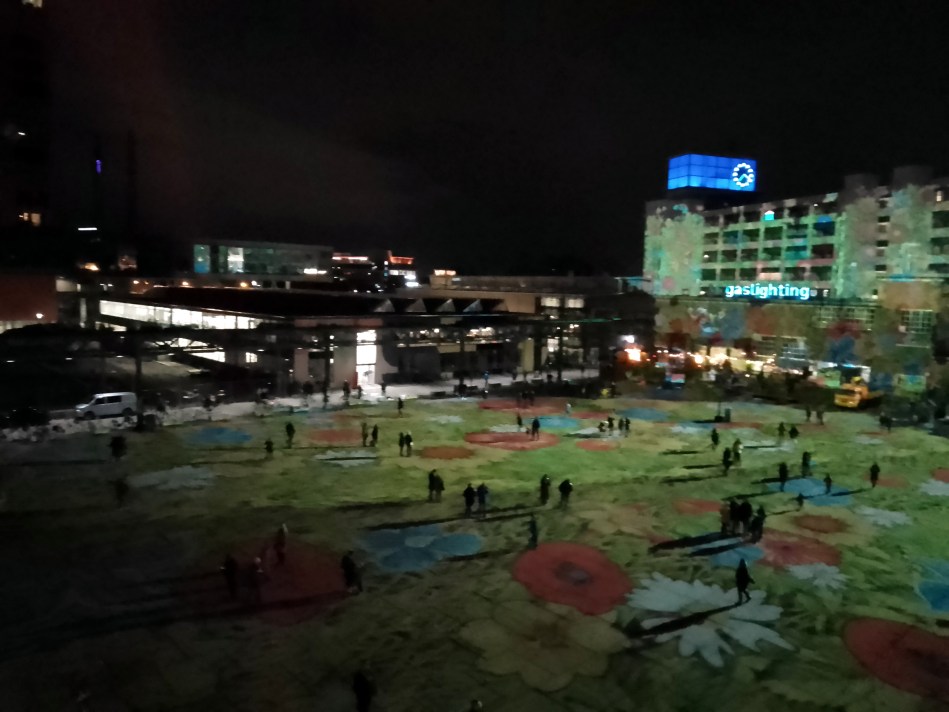 A month ago two best friends from the US spent a weekend with me, and among many wonderful cultural and other sight-seeing experiences, we explored the Glow light festival in Eindhoven, about two hours’ train ride south of Amsterdam. If you want more info about the festival, or more professional photos, tap or click Glow. Yesterday’s solo was a preview, as you can guess. Firefly field and this installation called “Footprint” were my two personal favorites – very experiential, as this one came with some recorded birdsong, and other was just a lot of fun as the lights bounced and danced in their field, with kids and adults marveling in the cold autumn night.