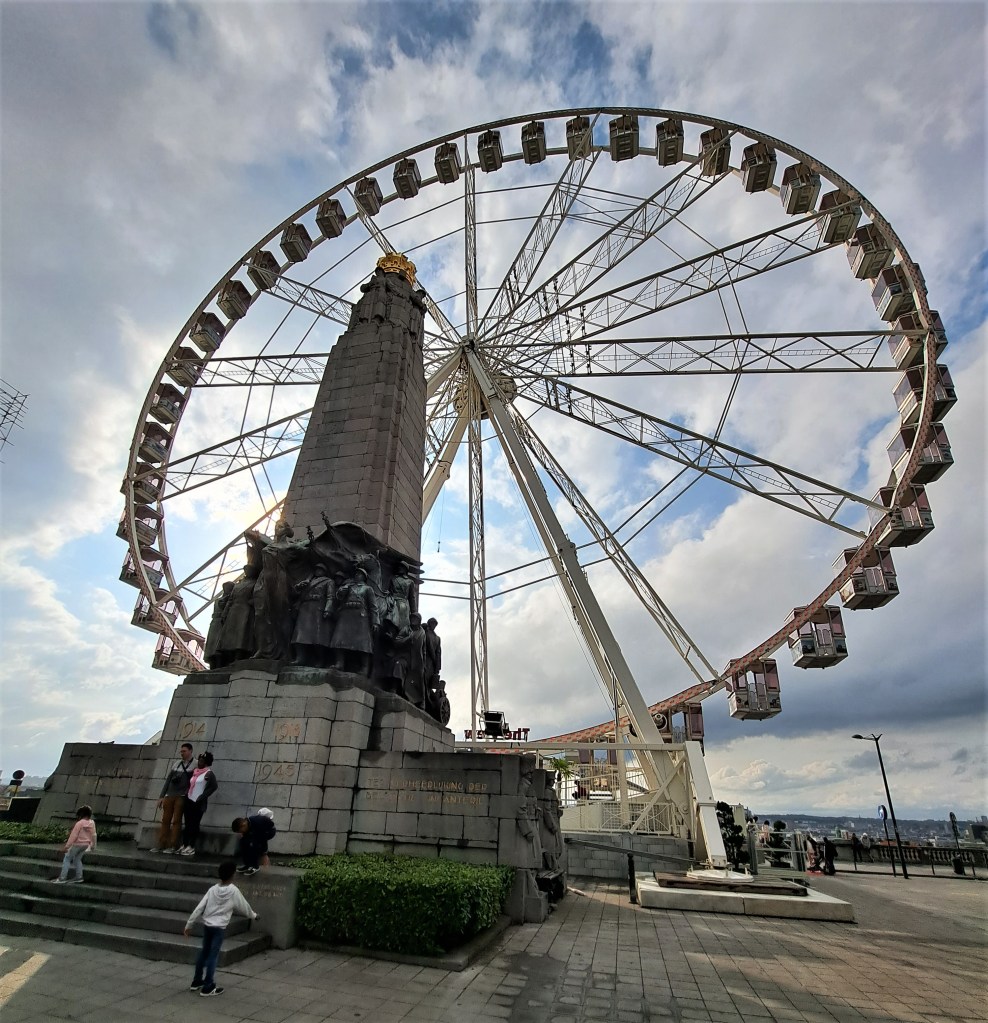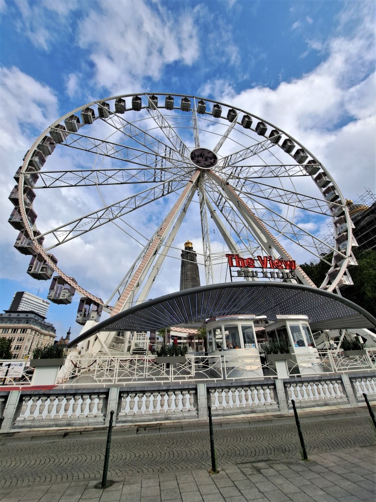 In July, work trips took me to Berlin for a few days of meetings and then to Brussels for a few more days of meetings shortly thereafter. Though completely exhausted on my only overnight-evening there (super early train down, after being out late enough to take some of those “City Lights” photos I’ve just been posting, if you want to know…), I still managed to get out for a walk and found quite a lot of stimulating visuals. 🙂 This modern tourist attraction sits right next to the memorial that I’m also showing you below, in quite an interesting juxtaposition.